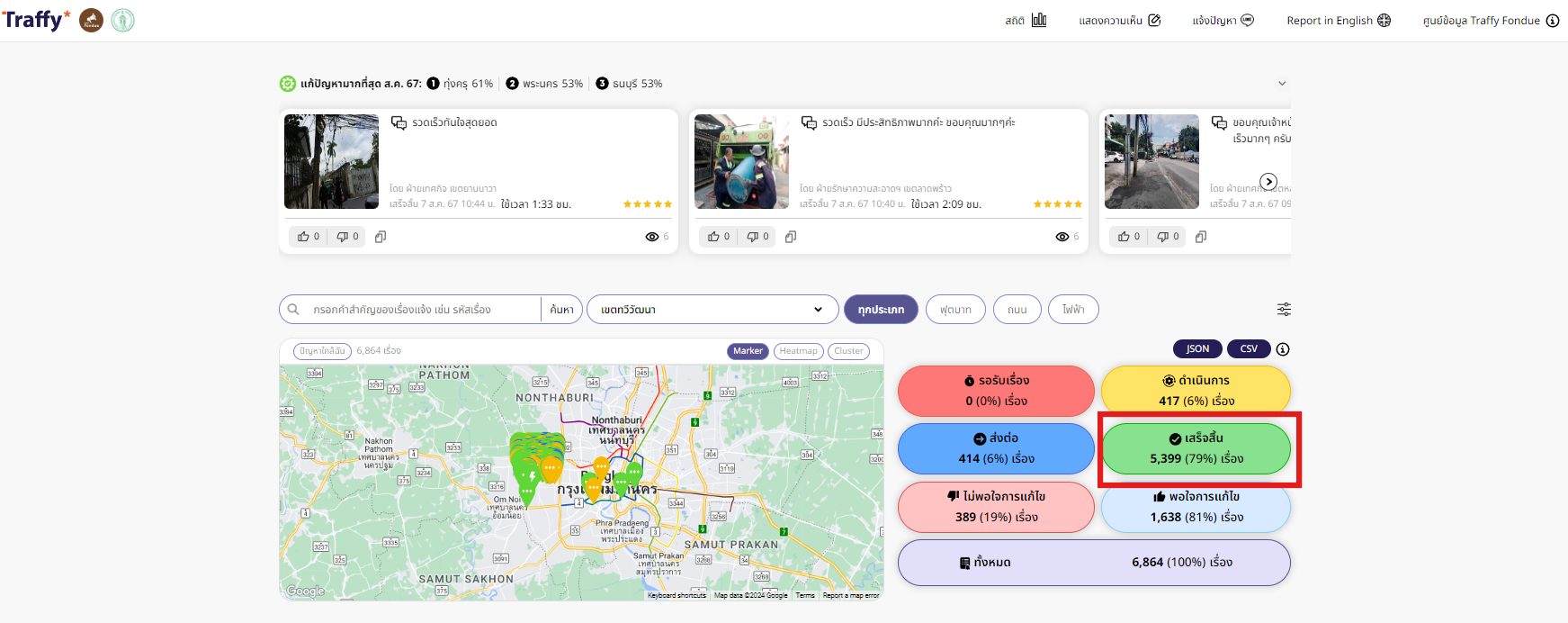 ![]() | 12 | ดำเนินการแก้ปัญหาข้อร้องเรียนผ่านระบบ Traffy Foundue | 10.00 | 2024-09-01 00:00:00.0000000 | 2024-09-30 00:00:00.0000000 |