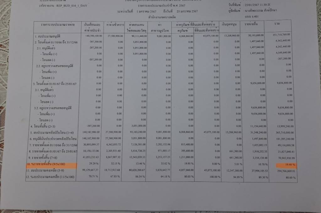 | 1415 | ![]() | 2024-01-25 00:00:00.0000000 | 5.81 | 0.00 | ร้อยละของการเบิกจ่ายงบประมาณในภาพรวมของสำนักงานเขตบางพลัดตั้งแต่วันที่ 1 ตุลาคม 2566 ถึงวันที่ 25 มกราคม 2567 = 19.40% | ||