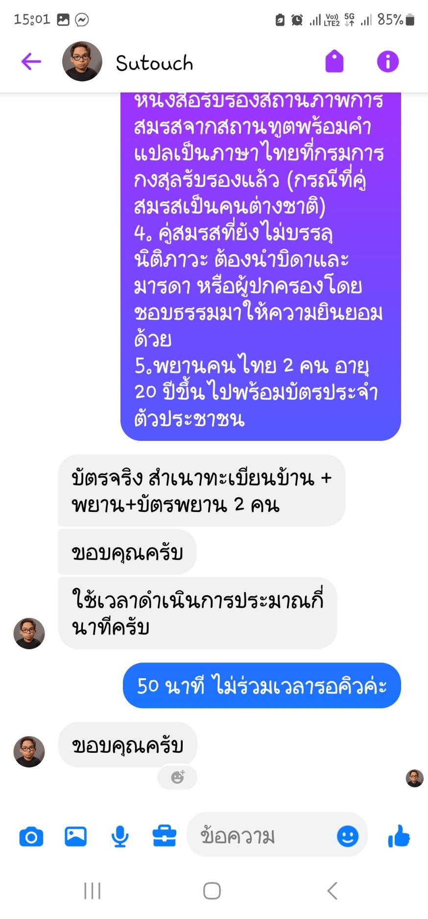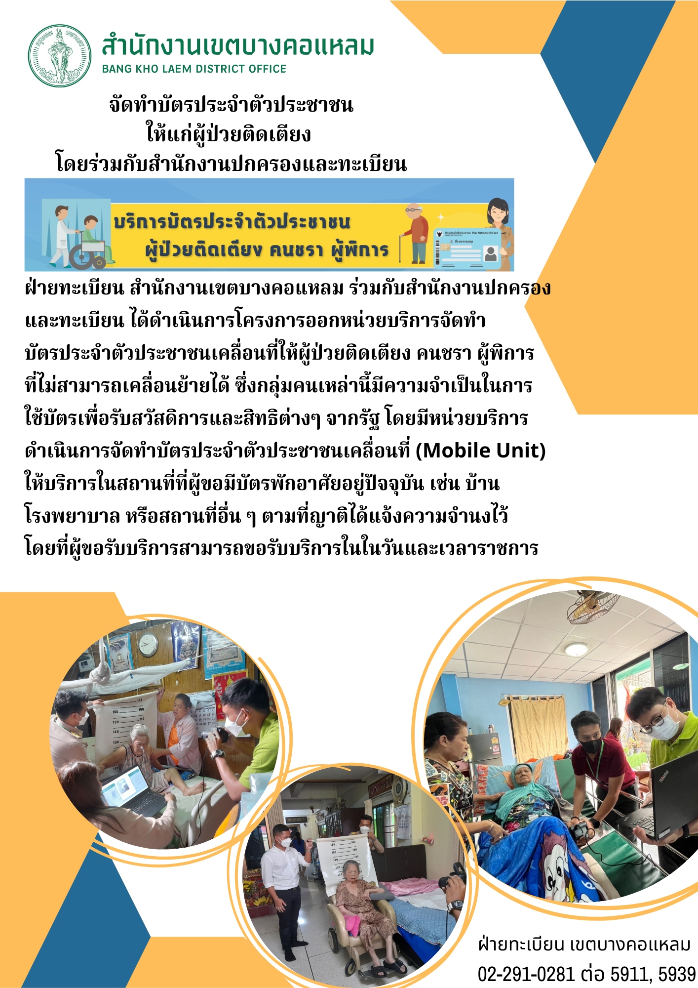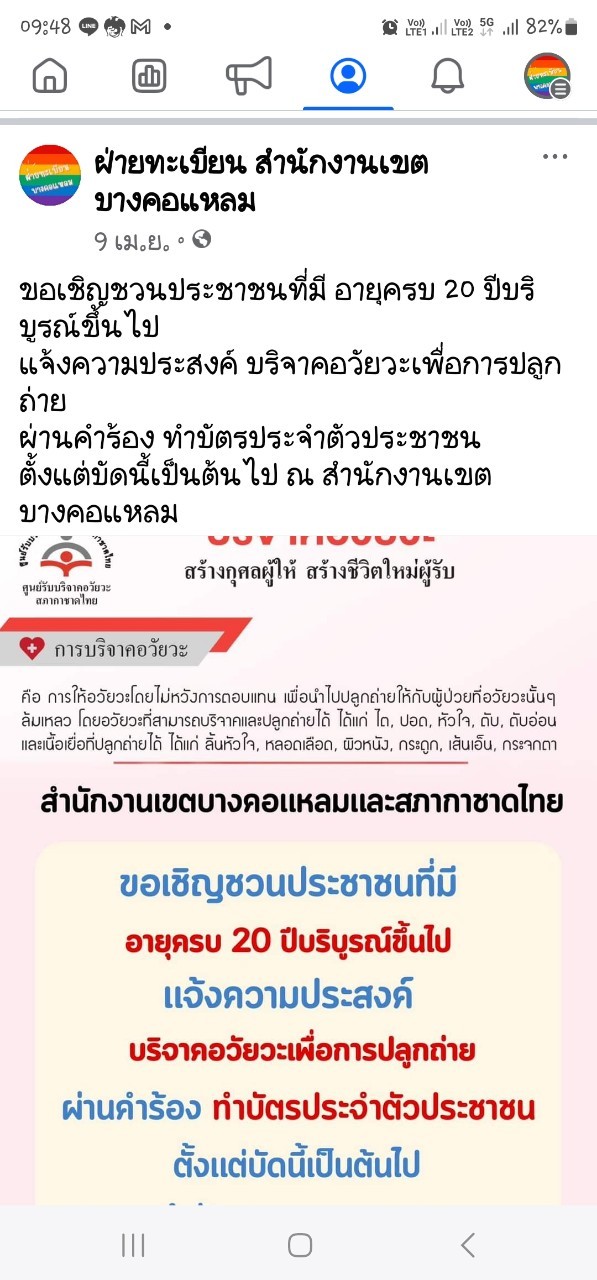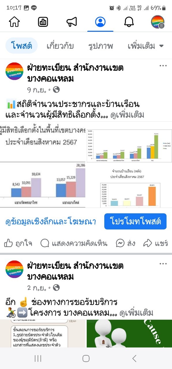 ![]() | 3 | จัดทำแผนการประชาสัมพันธ์แบบฟอร์มและสื่อความรู้ต่าง ๆ ทางด้านทะเบียนเผยแพร่ผ่านทาง Facebook, Line และสร้าง QR Code ปรับปรุงเมนูการใช้งาน Line Official Acount ฝ่ายทะเบียน ให้ประชาชนสามารถติดต่อและเข้าใ้ช้เมนูได้ง่ายขึ้นและได้รับคำแนะนำการให้บริการที่สะดวกและรวดเร็วขึ้น - ติดป้ายสื่อความรู้,แผ่นพับ,QR Code ณ ฝ่ายทะเบียน สำนักงานเขตบางคอแหลม เก็บรวบรวมสถิติผลการดำเนินงานตามโครงการ และติดตามความก้าวหน้าและประเมินผลการดำเนินงาน เดือน พ.ย. 2566 | 7.00 | 2023-11-01 00:00:00.0000000 | 2023-11-30 00:00:00.0000000 |