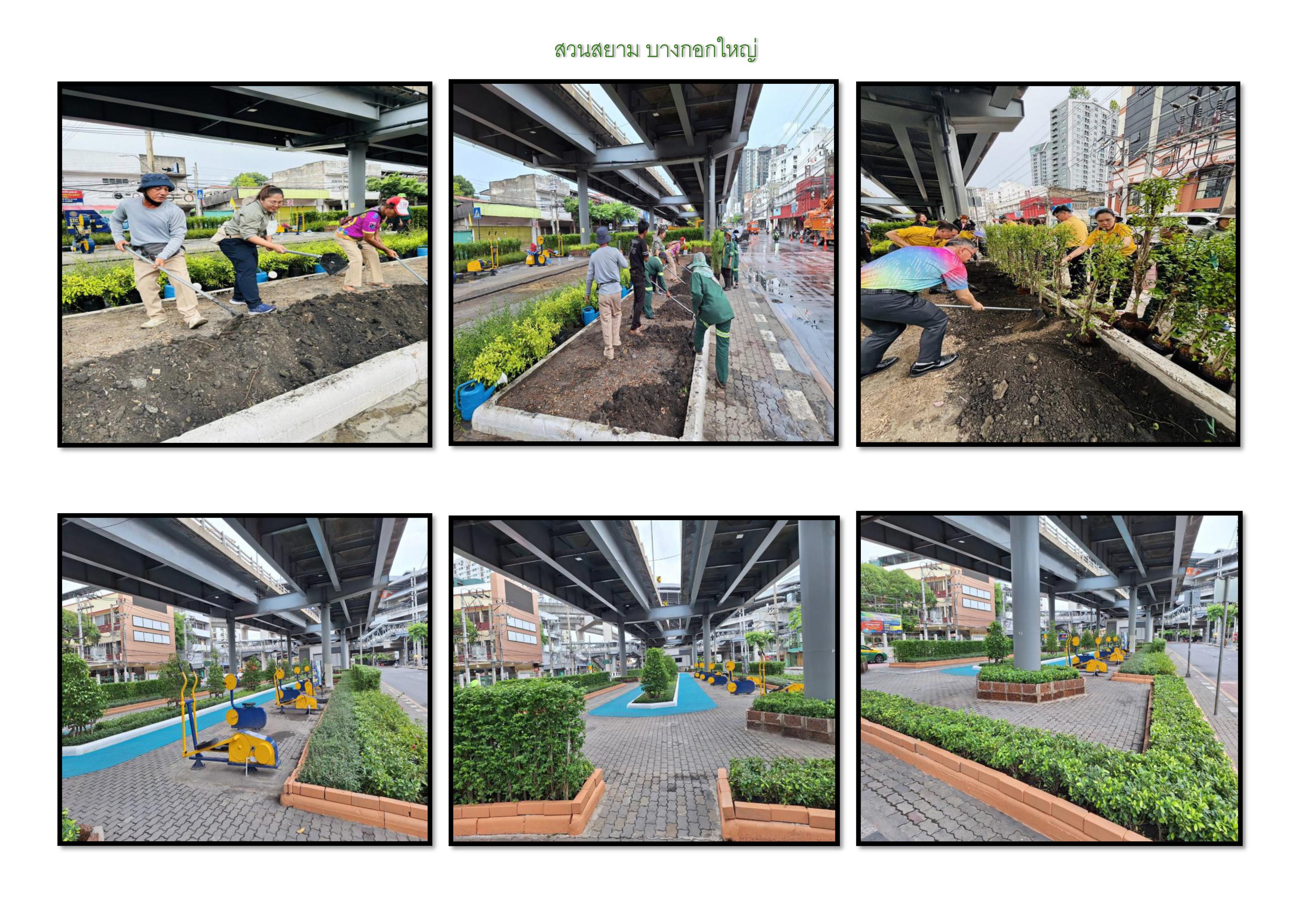 | 3 |  | 2024-06-28 00:00:00.0000000 | 1.00 | 0.00 |  | เดือนมิถุนายน 2567 ผลดำเนินการดังนี้ 1. สวนรุ่งอรุณ (สวนใหม่) ขนาดพื้นที่ 184 ตร.ม. ซึ่งเป็นสวนที่สำนักงานเขตดำเนินการแล้วเสร็จ เมื่อวันที่ 31 มีนาคม 2567 - ดำเนินการตัดแต่งถอนวัชพืช ดูแล บำรุงรักษา พรวนดินและรดน้ำต้นไม้ - เพื่อดูแลรักษาการเจริญเติบโตและยังคงสภาพความสวยงานร่มรื่น 2. สวนสยาม - บางกอกใหญ่ ขนาดพื้นที่ 280 ตร.ม. ซึ่งเป็นสวน 15 นาทีที่สำนักงานเขตร่วมกับวิทยาลัยเทคโนโลยีสยาม ได้ดำเนินการแล้วเสร็จ 3. สวนริมคลองบางหลวงอยู่ระหว่างสำรวจพื้นที่ เพื่อวิเคราะห์ความเหมาะสม | |