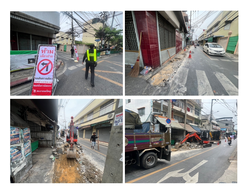 42024-03-15 00:00:00.00000000.000.00- ผู้รับจ้างอยู่ระหว่างดำเนินการประสานสถานีตำรวจในพื้นที่ เพื่อหารือเกี่ยวกับการปิดจราจรและประชาสัมพันธ์ให้ประชาชนในพื้นที่ทราบ ในการดำเนินการปรับปรุงทางเท้า - ผู้รับจ้างดำเนินการปรับปรุงทางเท้าโดยนำเครื่องจักรรื้อพื้นทางเท้า เพื่อดำเนินการปรับพื้นทางเท้า