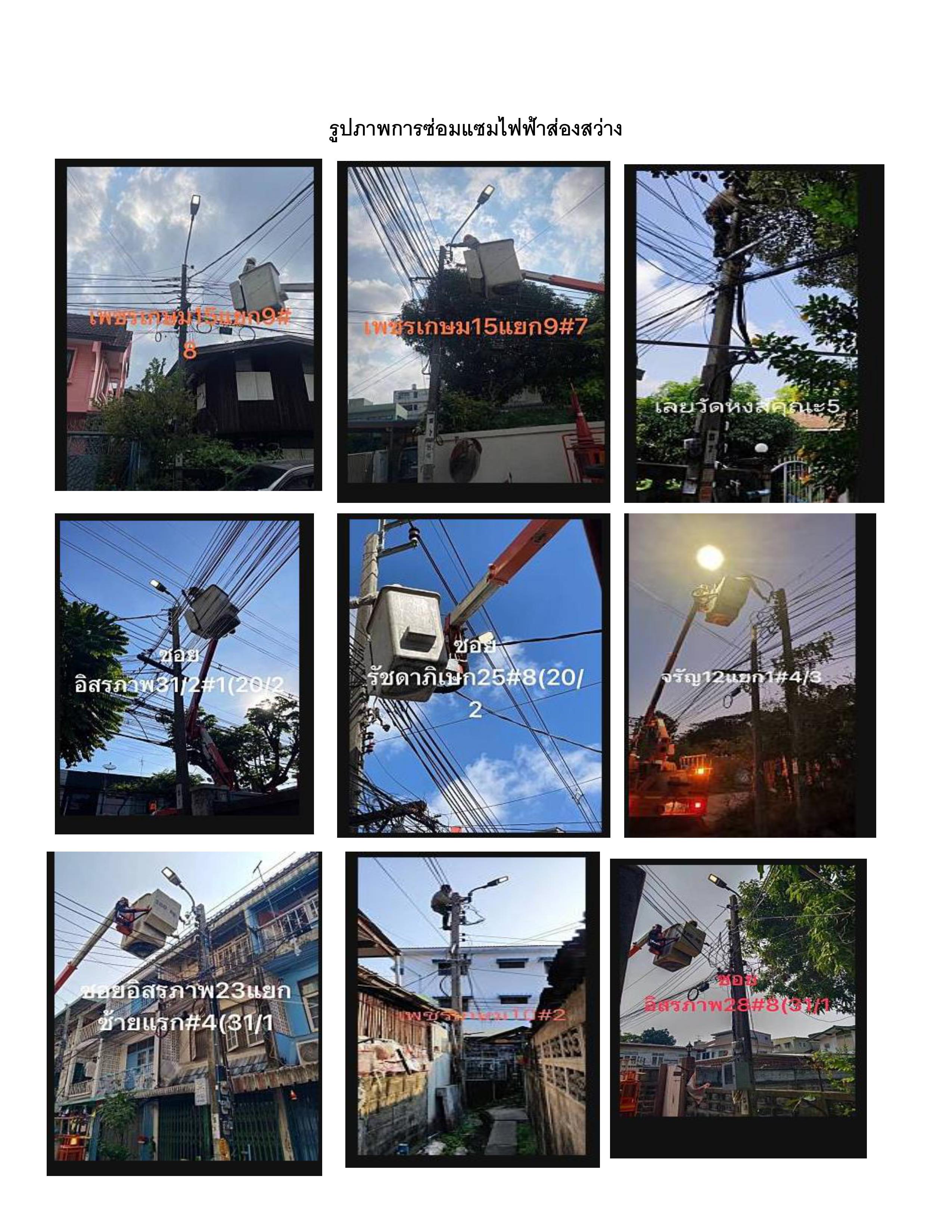 52024-03-31 00:00:00.0000000130.000.00ดำเนินการประสานงานให้การไฟฟ้านครหลวง ดำเนินการซ่อมแซมไฟฟ้าส่องสว่างที่ชำรุดดับ ตั้งแต่เดือน ต.ค.67 - มี.ค. 68 จำนวน 431 ดวง 1. ต.ค. 67 = 43 ดวง 2. พ.ย. 67 = 80 ดวง 3. ธ.ค. 67 = 125 ดวง 4. ม.ค. 68 = 53 ดวง 5. ก.พ. 68 = 93 ดวง 6. มี.ค. 68 = 37 ดวง