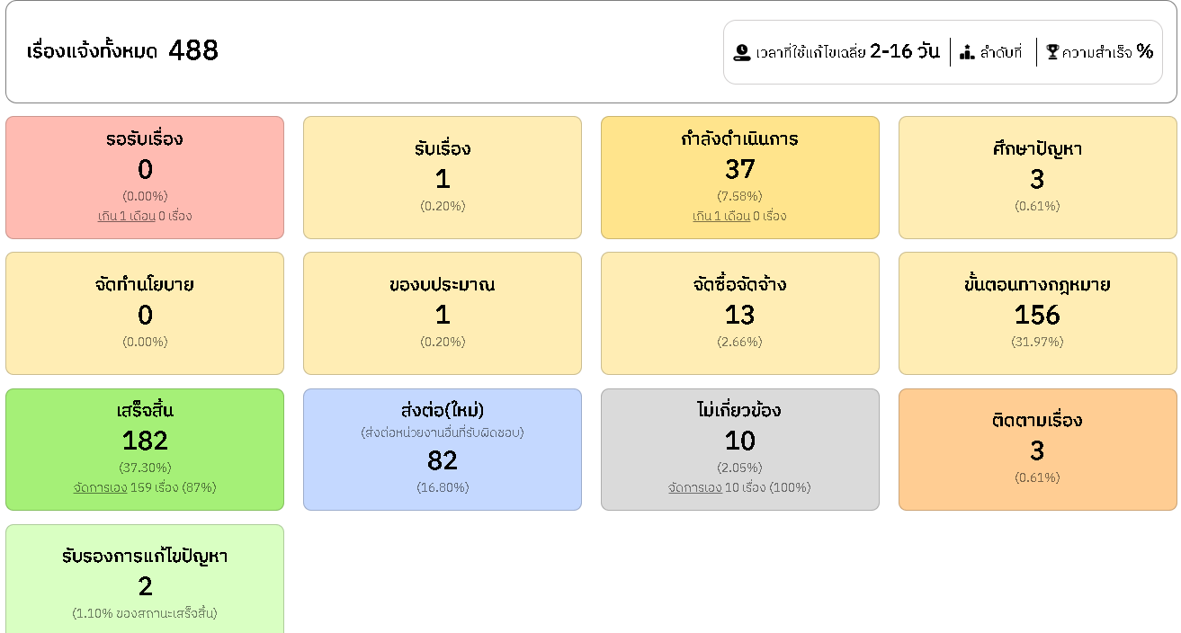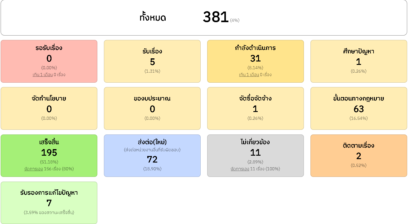 | 102 |  | 2024-07-02 00:00:00.0000000 | 37.30 | 0.00 |  | ความสำเร็จในการแก้ไขปัญหาข้อร้องเรียนของประชาชนผ่าน Traffy Fondue ประจำเดือนมิถุนายน 2567 (ข้อมูล ณ วันที่ 2 ก.ค.67) | |