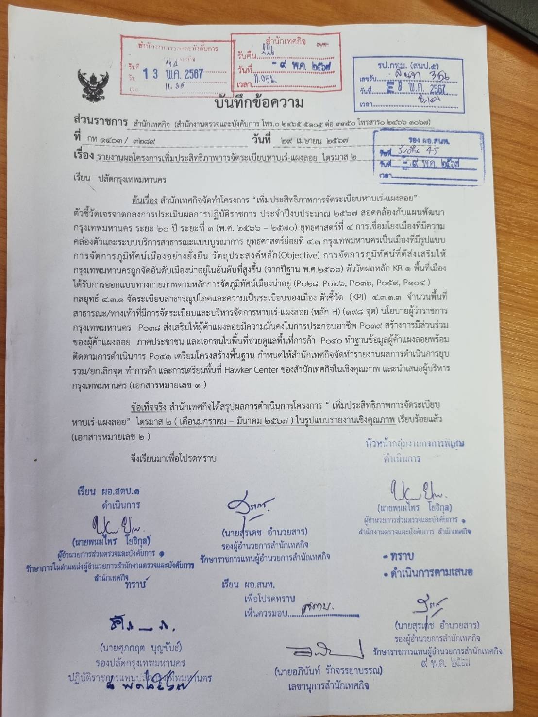 | ลำดับ | วันที่รายงาน | ผลการดำเนินงาน |