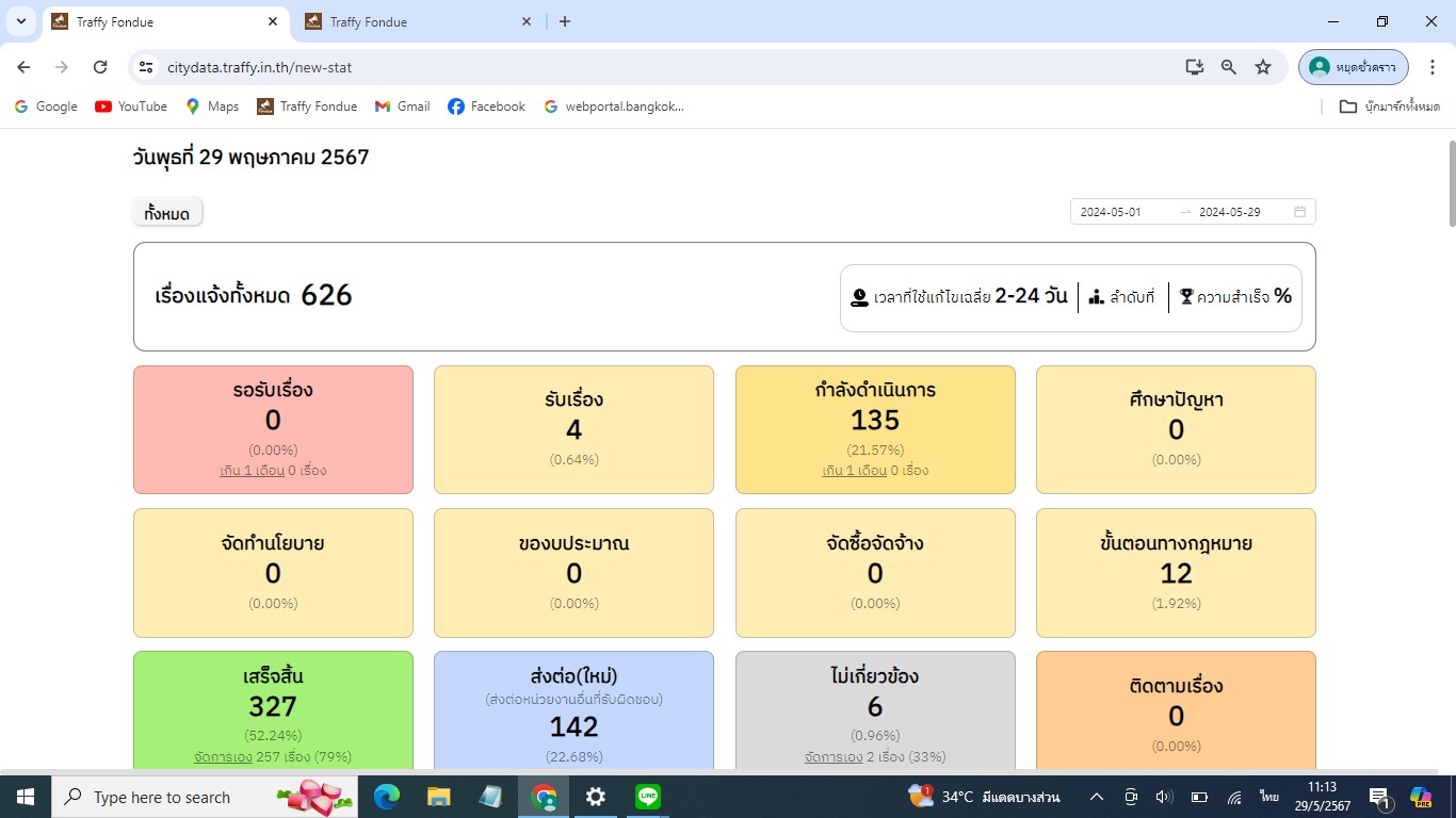 | 102 | ![]() | 2024-03-27 00:00:00.0000000 | 80.00 | 0.00 | สำนักงานเขตบางเขนรับเรื่องร้องเรียนประจำเดือนมีนาคม 2567 ทั้งหมด 610 เรื่อง เสร็จสิ้น 488 เรื่อง | ||