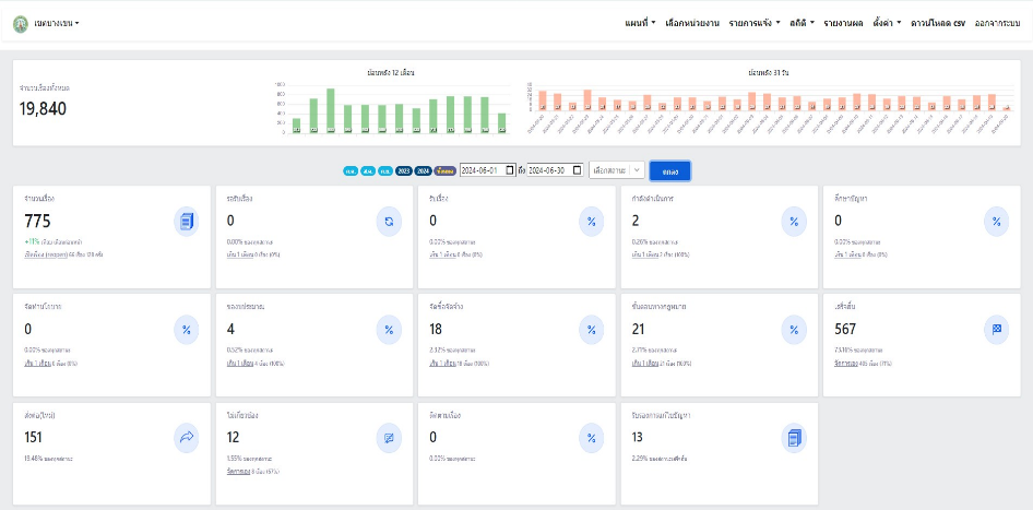 | 102 | ![]() | 2024-06-30 00:00:00.0000000 | 73.16 | 0.00 | สำนักงานเขตบางเขนรับเรื่องร้องเรียนประจำเดือนมิถุนายน 2567 ทั้งหมด 775 เรื่อง เสร็จสิ้น 567 เรื่อง ความพึงพอใจคิดเป็นร้อยละ 3.82 | ||