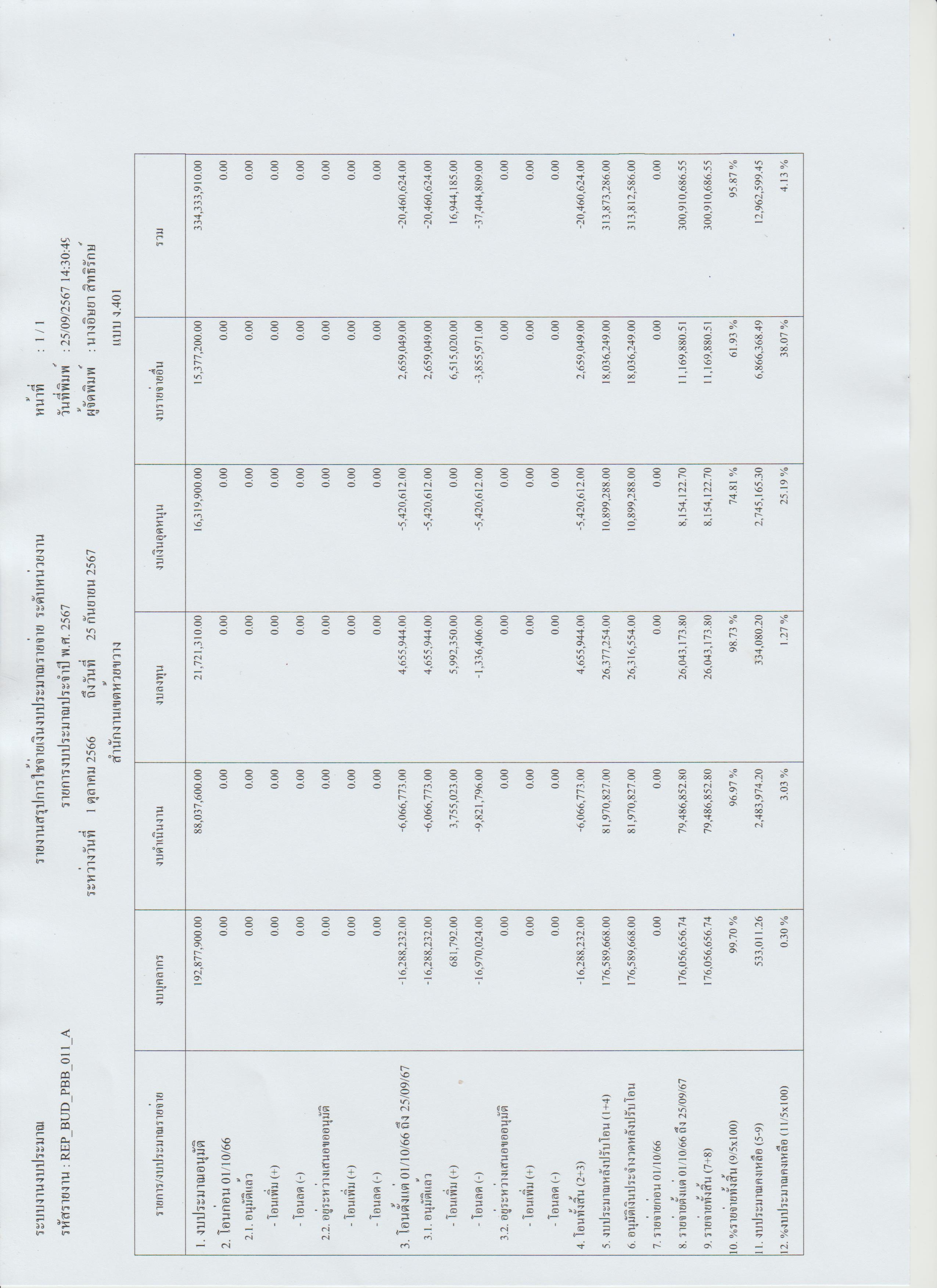 992023-10-30 00:00:00.00000004.190.00 เบิกจ่ายงบประมาณ ณ วันที่ 30 ตุลาคม 2566 คิดเป็นร้อยละ 4.19