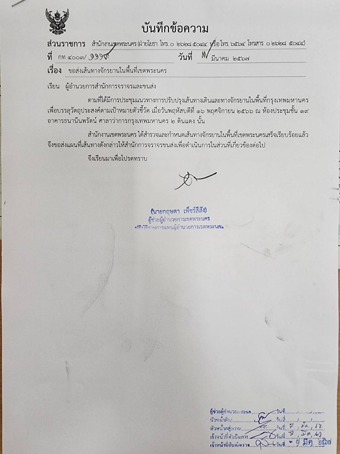 12362024-03-12 00:00:00.00000000.000.00จัดส่งเส้นทางจักรยานในพื้นที่เขตพระนคร ให้สจส. ตามหนังสือสำนักงานเขตพระนคร ที่ กท 4003/1118 ลงวันที่ 7 มีนาคม 2567