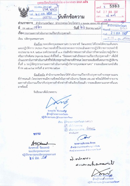 42024-09-18 00:00:00.00000000.000.00หนังสือรายงานผลการดำเนินที่ปลัดกรุงเทพมหานครรับทราบแล้ว