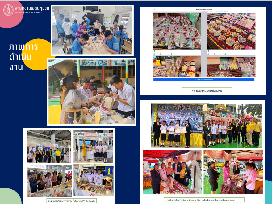 6032024-09-19 00:00:00.000000060.000.00นักเรียนที่เข้าร่วมโครงการได้รับการฝึกอบรม สร้างสรรค์สินค้า เพื่อจัดแสดงและจำหน่ายในหลายช่องทาง ไม่ว่าจะเป็น ออกบูธแสดงสินค้าในโรงเรียน , นำสินค้าออกวางจำหน่ายที่ห้าง MBK , ขายสินค้าในช่องทางออนไลน์ เช่น Facebook Tiktok และเว็ปไซต์โรงเรียน เป็นต้น