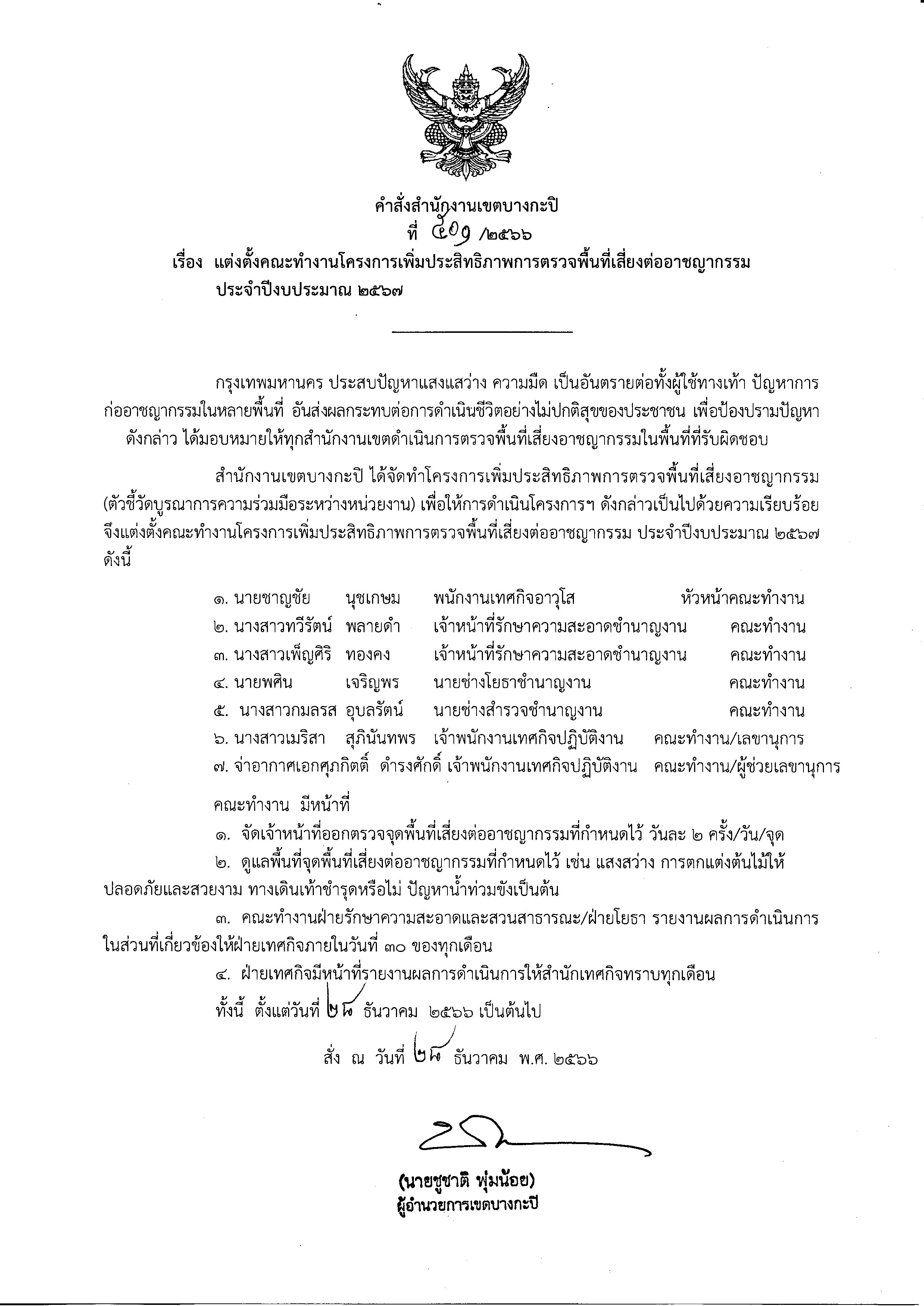 ![]() | - | แก้ไขจุดเสี่ยงอาชญากรรม | 0.00 | 10.00 | สำนักงานเขตบางกะปิ | ฝ่ายเทศกิจ |