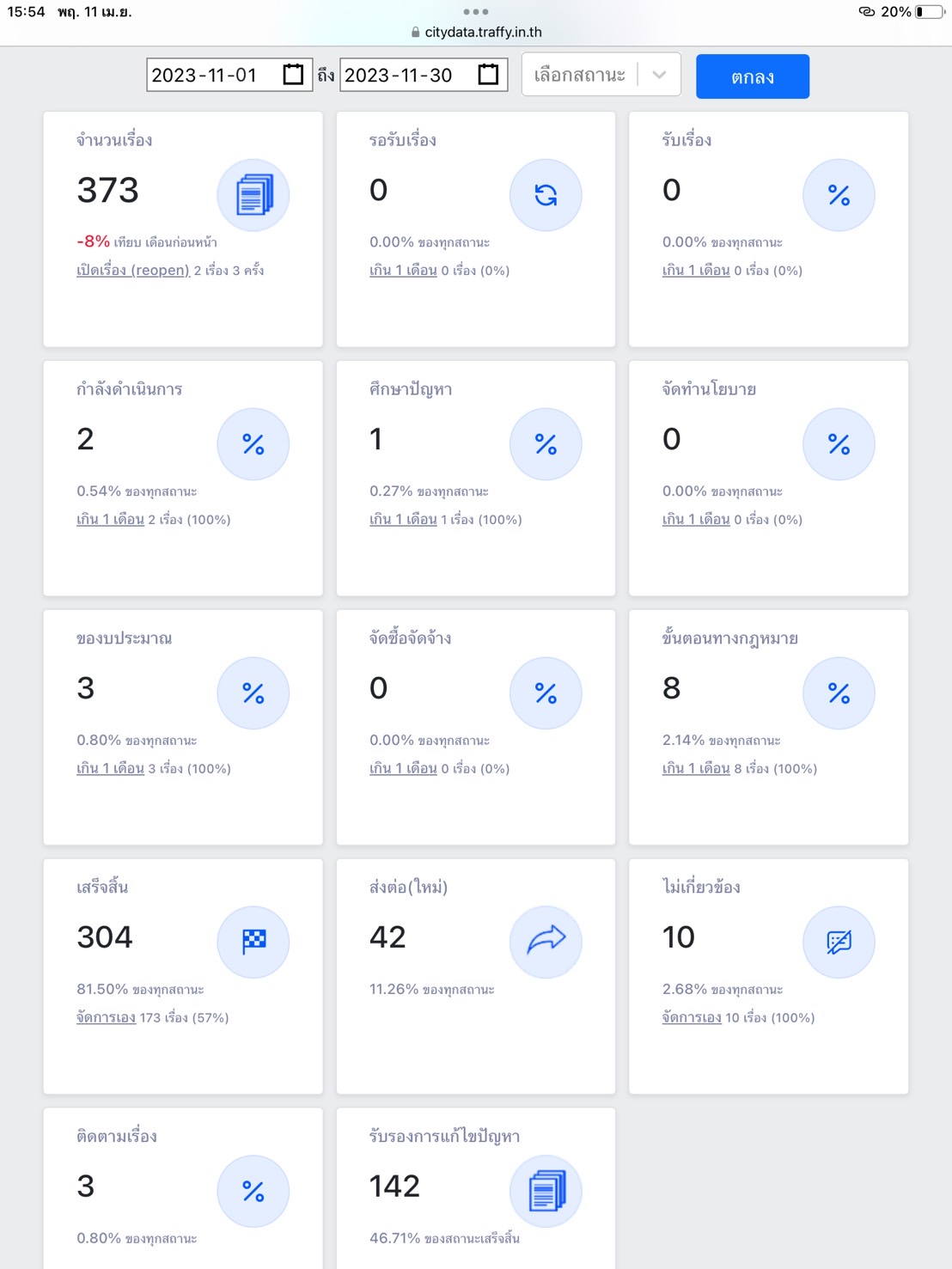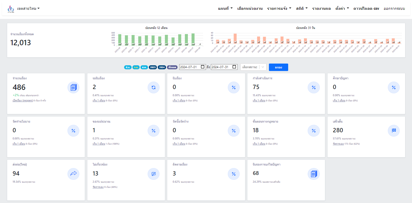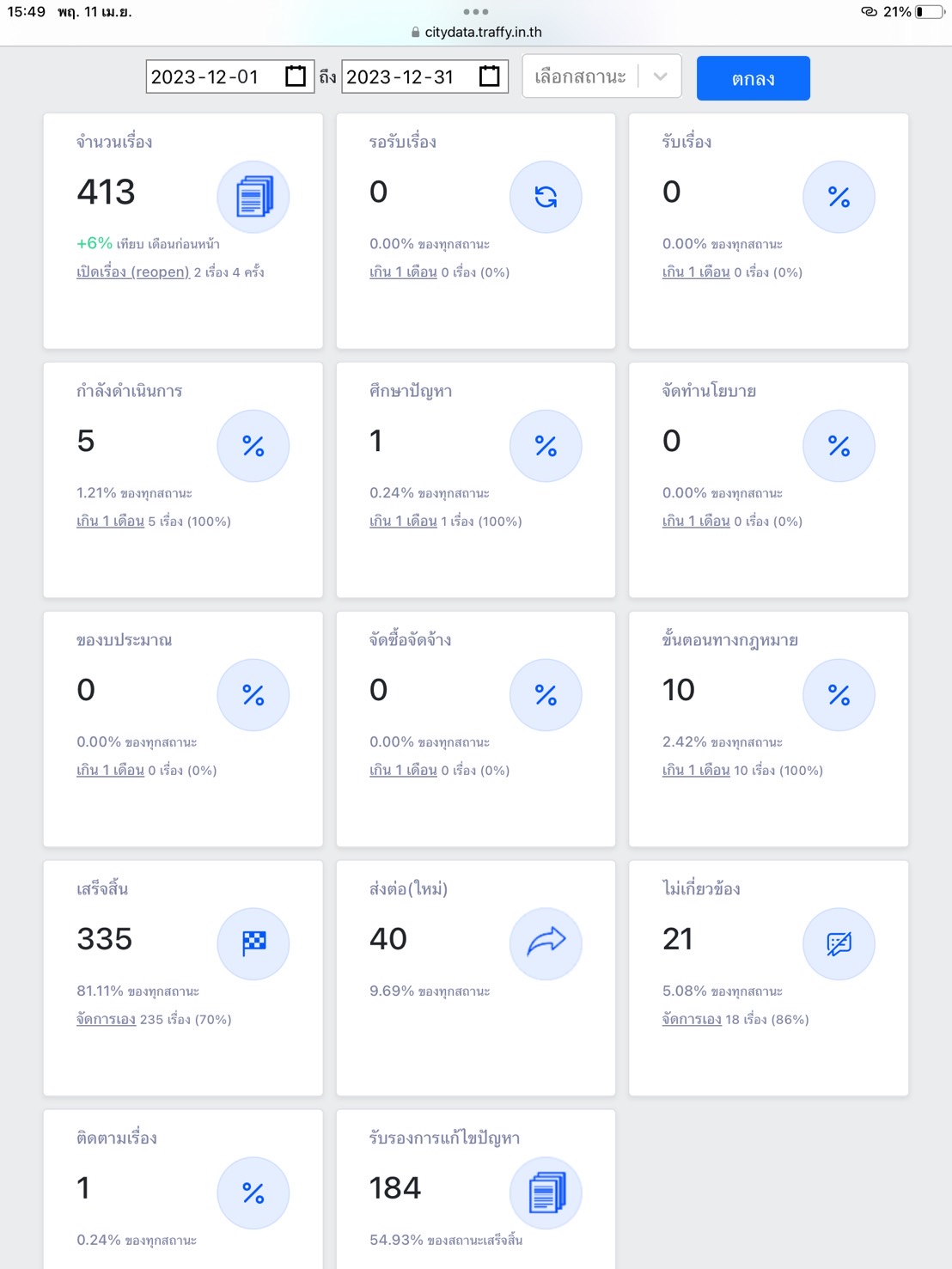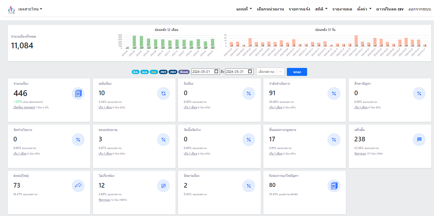 ![]() | - | การแก้ไขปัญหาเรื่องร้องเรียนของประชาชนผ่านระบบ Traffy Fondue | 0.00 | 100.00 | สำนักงานเขตสายไหม | ฝ่ายปกครอง |