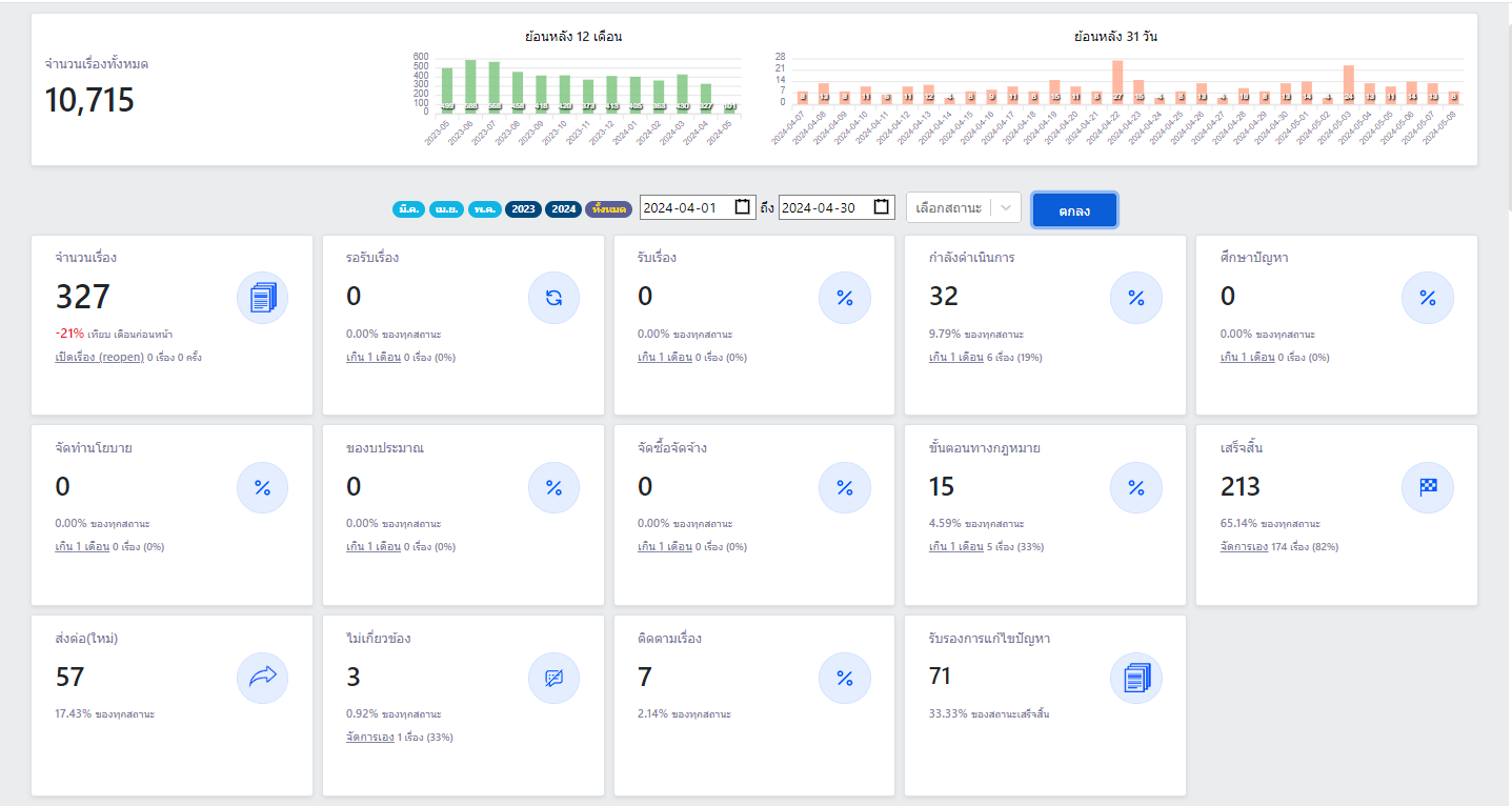 ![]() | 8 | ดำเนินการแก้ไขปัญหาเรื่องร้องเรียน เดือน เม.ย. 2567 | 5.00 | 2424-05-01 00:00:00.0000000 | 2424-05-31 00:00:00.0000000 |
