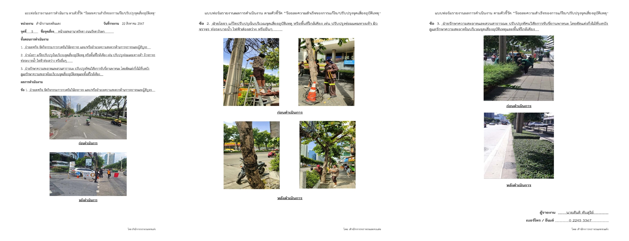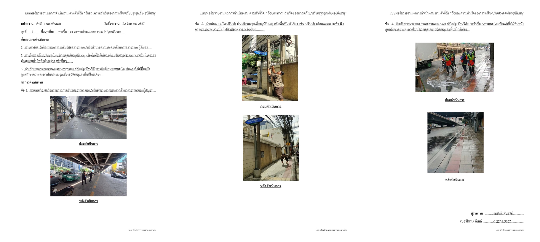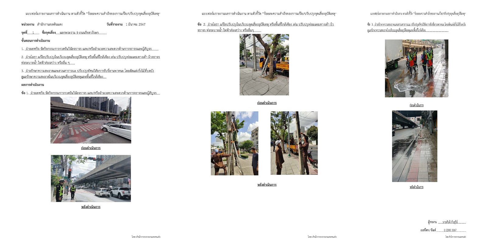 | 11 | ![]() | 2024-09-30 00:00:00.0000000 | 0.00 | 0.00 | รายงานผลการดำเนินการแก้ไขปรับปรุงจุดเสี่ยง ครั้งที่ 2 (22 สิงหาคม 2567) จุดที่ 3 หน้าเดอะสตรีทรัชดา ถนนเทียมร่วมมิตรตัดถนนรัชดาภิเษก | ||