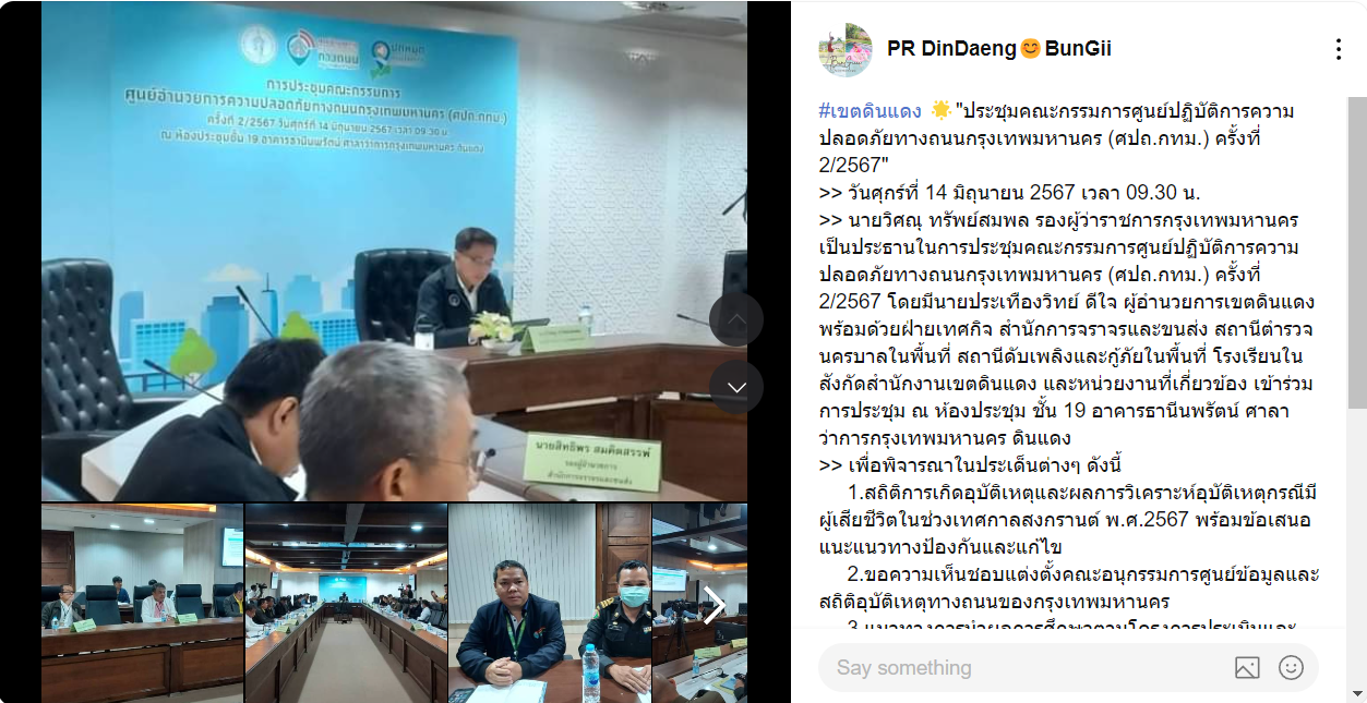 | 11 | ![]() | 2024-09-30 00:00:00.0000000 | 0.00 | 0.00 | การประชุมคณะกรรมการศูนย์ปฏิบัติการความปลอดภัยทางถนนเขตดินแดง (ศปถ.ดินแดง) ครั้งที่ 2/2567 วันศุกร์ที่ 30 สิงหาคม 2567 เวลา 13.30 น. ณ ห้องประชุมชั้น 2 สำนักงานเขตดินแดง | ||