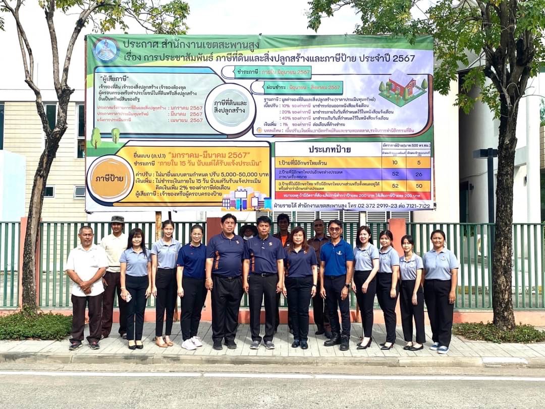 จัดเจ้าหน้าที่สำหรับออกพื้นที่เพื่อประชาสัมพันธ์ภาษีที่ดินและสิ่งปลูกสร้างในพื้นที่เขตสะพานสูงตามแผนปฏิบัติงานประจำเดือนรวมถึงประชาสัมพัธ์ผ่านสื่อ Social network เช่น เว็บไซต์สำนักงานเขตสะพานสูง Facebook Line