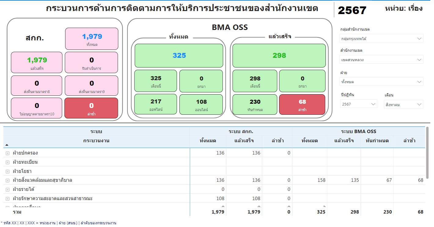 | 21 | ![]() | 2024-09-28 00:00:00.0000000 | 100.00 | 0.00 | จำนวนคำขอที่เขตสามารถให้บริการได้ภายในกรอบเวลาตามคู่มือประชาชน ประจำเดือนกันยายน 2567 ร้อยละ 100 | ||