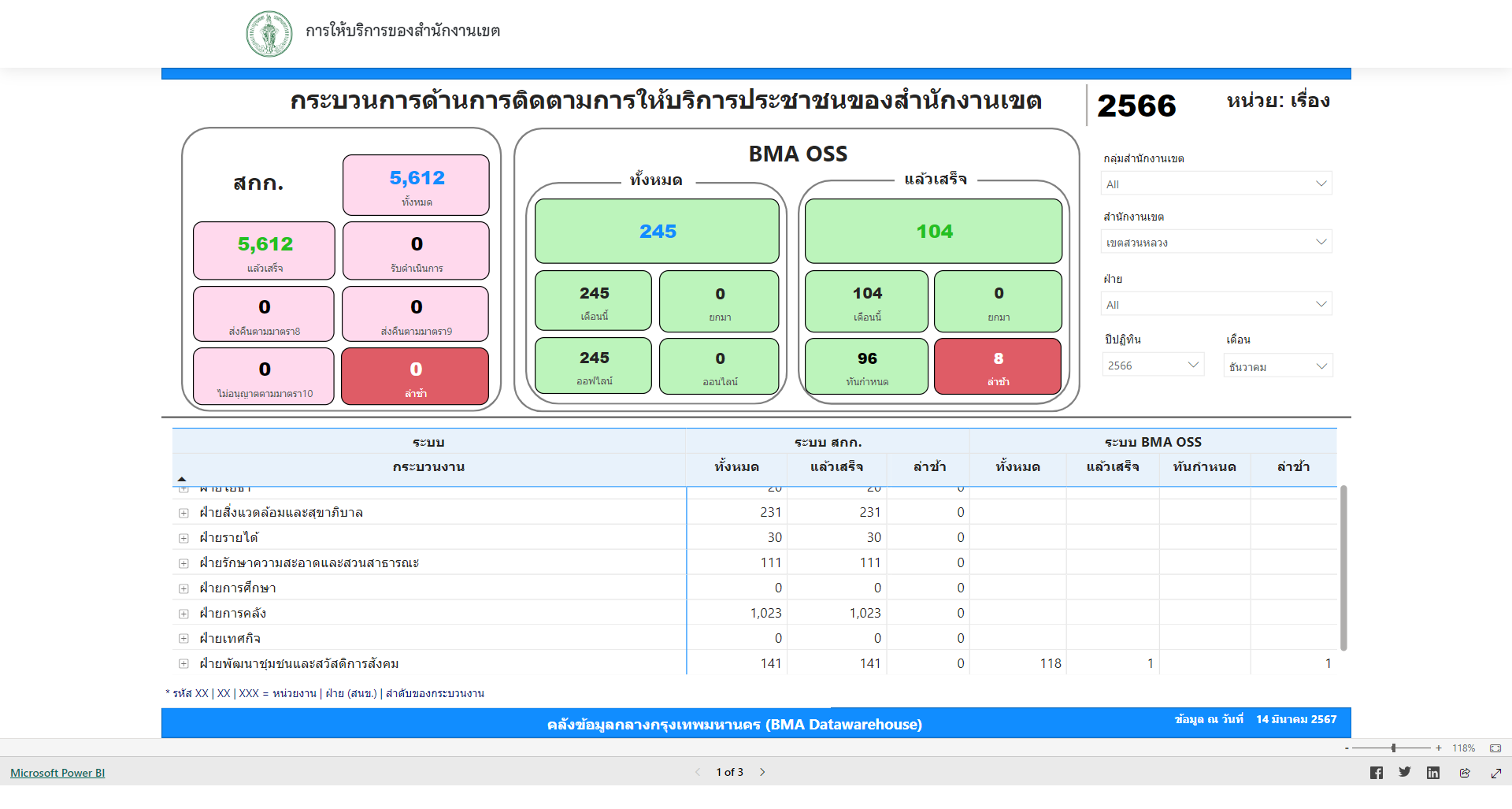 | 21 | ![]() | 2023-12-28 00:00:00.0000000 | 100.00 | 0.00 | จำนวนคำขอที่เขตสามารถให้บริการได้ภายในกรอบเวลาตามคู่มือประชาชน ประจำเดือนธันวาคม 2566 จำนวน 5,612 ราย แล้วเสร็จ 5,612 ราย คิดเป็นร้อยละ 100 - ปกครอง 111 กระบวนงาน แล้วเสร็จ 111 กระบวนงาน - ทะเบียน 3945 กระบวนงาน แล้วเสร็จ 3945 กระบวนงาน - โยธา 20 กระบวนงาน แล้วเร็จ 20 กระบวนงาน - สิ่งแวดล้อมฯ 231 กระบวนงาน แล้วเสร็จ 231 กระบวนงาน - รายได้ 30 กระบวนงาน แล้วเสร็จ 30 กระบวนงาน - รักษาฯ 111 กระบวนงาน แล้วเสร็จ 111 กระบวนงาน - การศึกษา 0 กระบวนงาน - การคลัง 1023 กระบวนงาน แล้วเสร็จ 1023 กระบวนงาน - เทศกิจ 0 กระบวนงาน - พัฒนาชุมชนฯ 141 กระบวนงาน แล้วเสร็จ 141 กระบวนงาน | ||