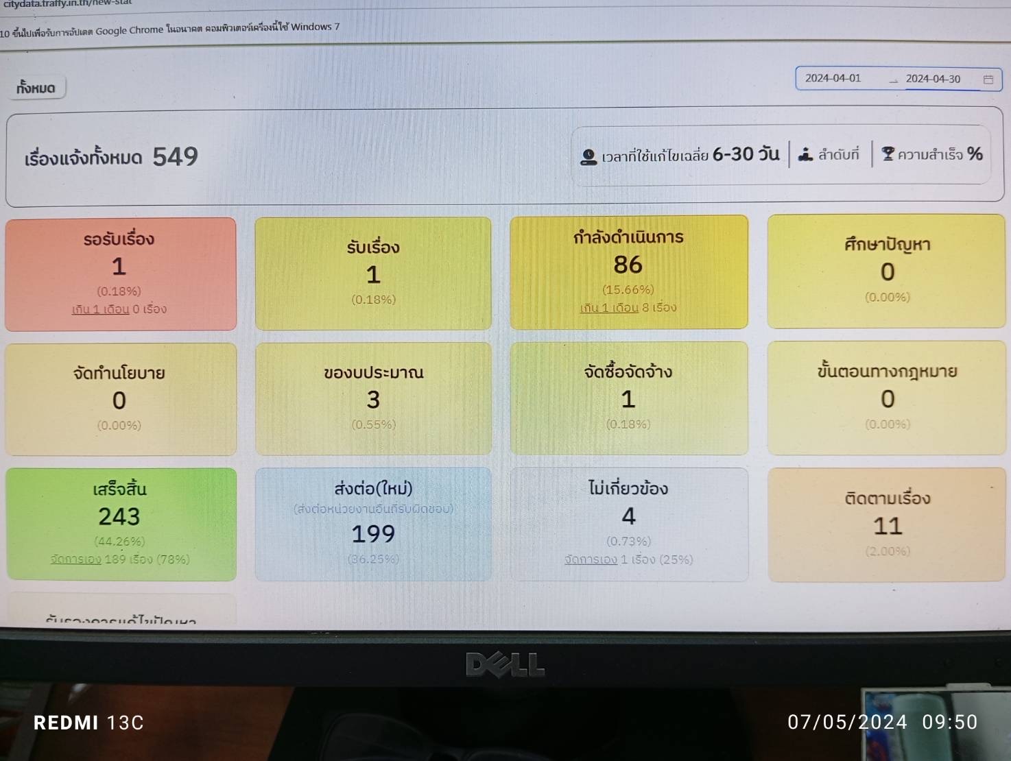 1022024-05-03 00:00:00.000000069.430.00เม.ย. 67 จำนวนเรื่อง 549 เสร็จสิ้น 243 ส่งต่อ 199 คิดเป็น 69.43 %