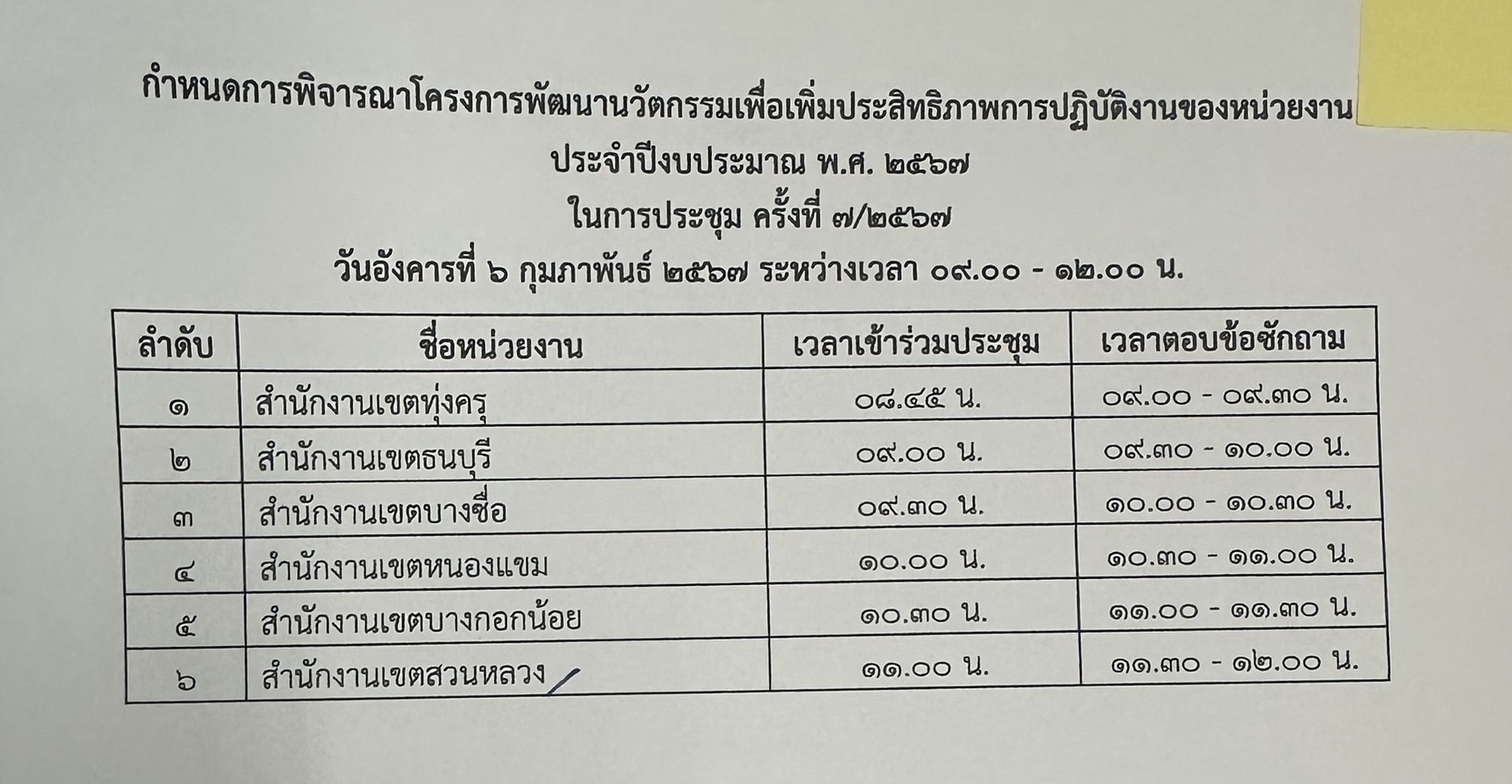 | 1413 |  | 2024-01-31 00:00:00.0000000 | 0.00 | 0.00 |  | กำหนดพิจารณาโครงการพัฒนานวัตกรรมฯ ของสำนักงานเขตสวนหลวง วันที่ 6 กุมภาพันธ์ 2567 | |