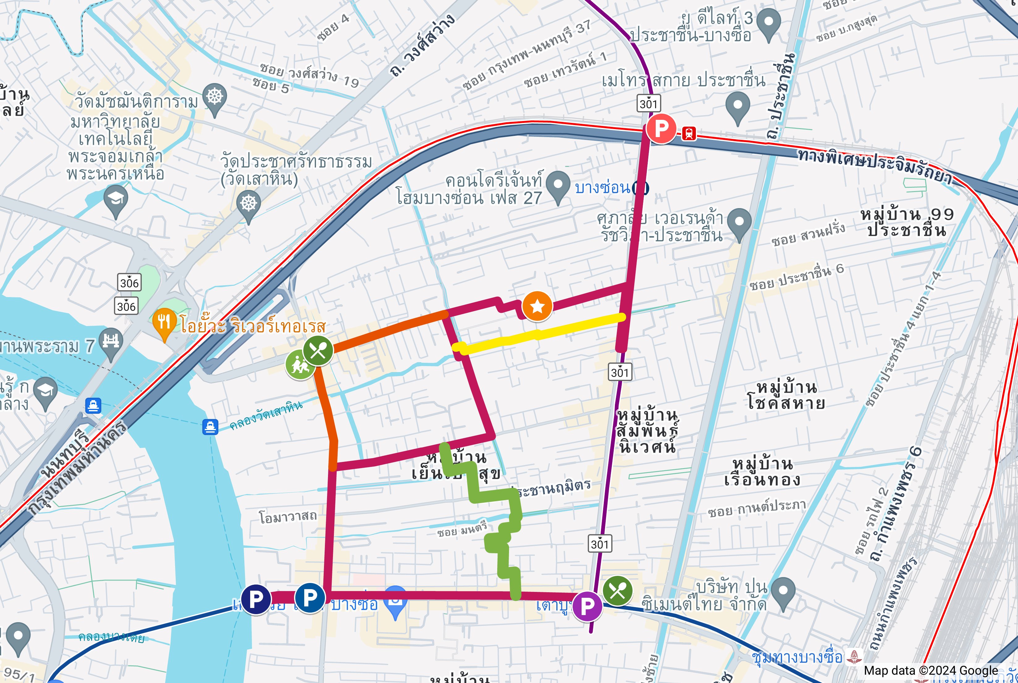 | 1236 | ![]() | 2024-06-15 00:00:00.0000000 | 0.00 | 0.00 | 23พ.ค.67 สำรวจเส้นทางตั้งแต่สถานีบางซ่อน เข้ากรุงเทพ-นนทบุรี21 ผ่านชุมชนศรีเขมา ออกซอยเยาวภา ไปถึงศูนย์การค้ามณีพิมาน และMRTเตาปูน ปั่นเส้นประชาราษฎร์สาย2 ผ่านMRTบางโพ จบที่ท่าน้ำบางโพ ได้ระยะทางประมาณ7.00กม. | ||