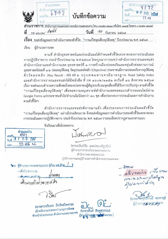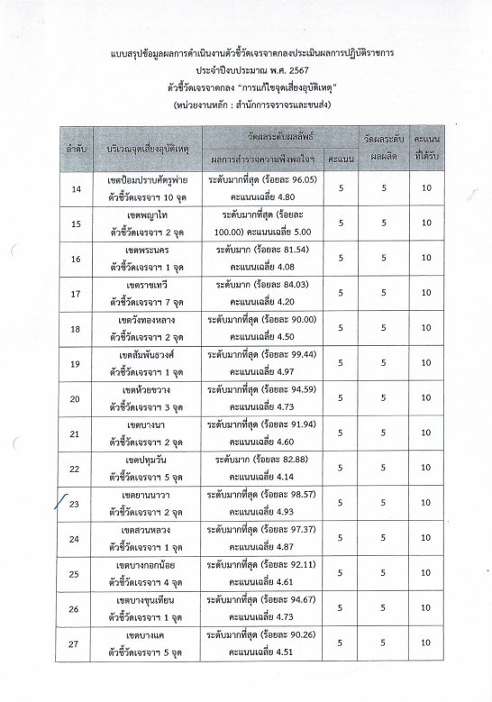 | 11 |  | 2024-09-26 00:00:00.0000000 | 0.00 | 0.00 |  | รายงานผลสำรวจความพึงพอใจ ตัวชี้วัด การแก้ไขจุดเสี่ยงอุบัติเหตุ | |