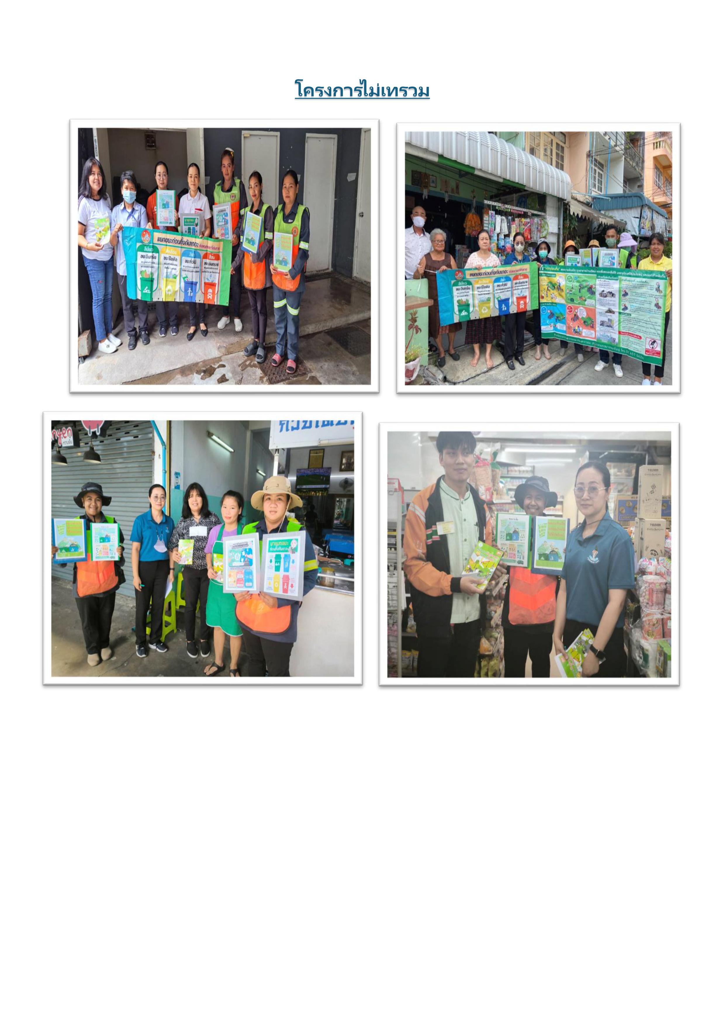 | 24 | ![]() | 2024-06-28 00:00:00.0000000 | 100.00 | 0.00 | รณรงค์โครงการไม่เทรวม ให้กับสถานประกอบการ ร้านค้า ร้านอาหาร ในพื้นที่ให้ครอบคลุม บ้านเรือนประชาชน โรงเรียน วัด จัดวางถังขยะแยกประเภทให้กับแหล่งชุมชน บ้านเรือน โรงเรียน ศาสนสถาน ฯลฯ ให้ความรู้กับประชาชน ในการแยกประเภทของขยะแต่ละชนิด ว่าขยะประเภทไหนสามารถนำมาใช้ประโยชน์ได้อีก | ||