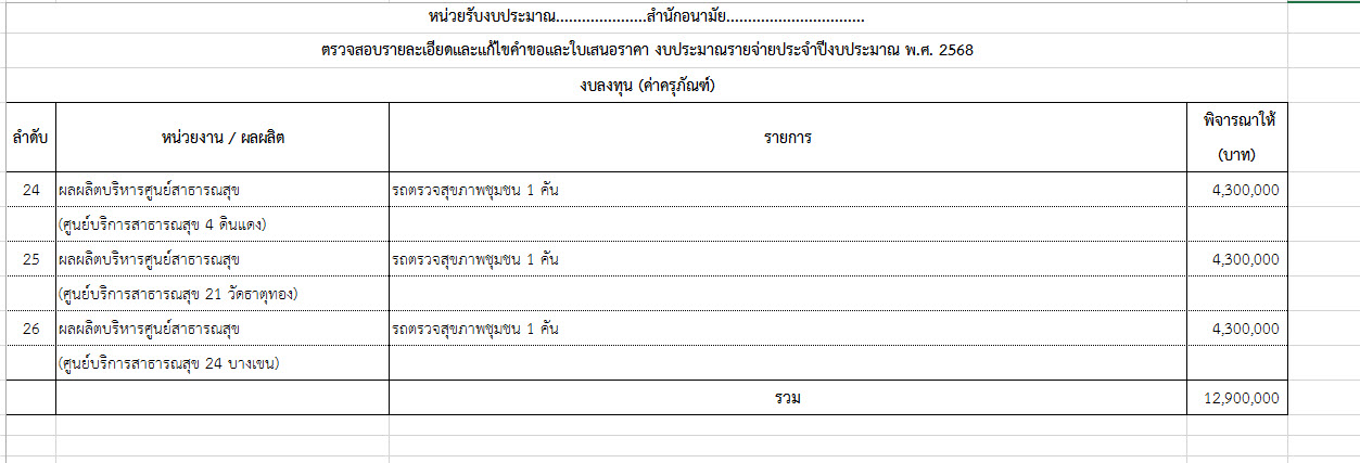 12162024-05-16 00:00:00.00000000.000.00อยู่ระหว่างดำเนินการ เสนอของบประมาณ สำหรับจัดซื้อปี 68