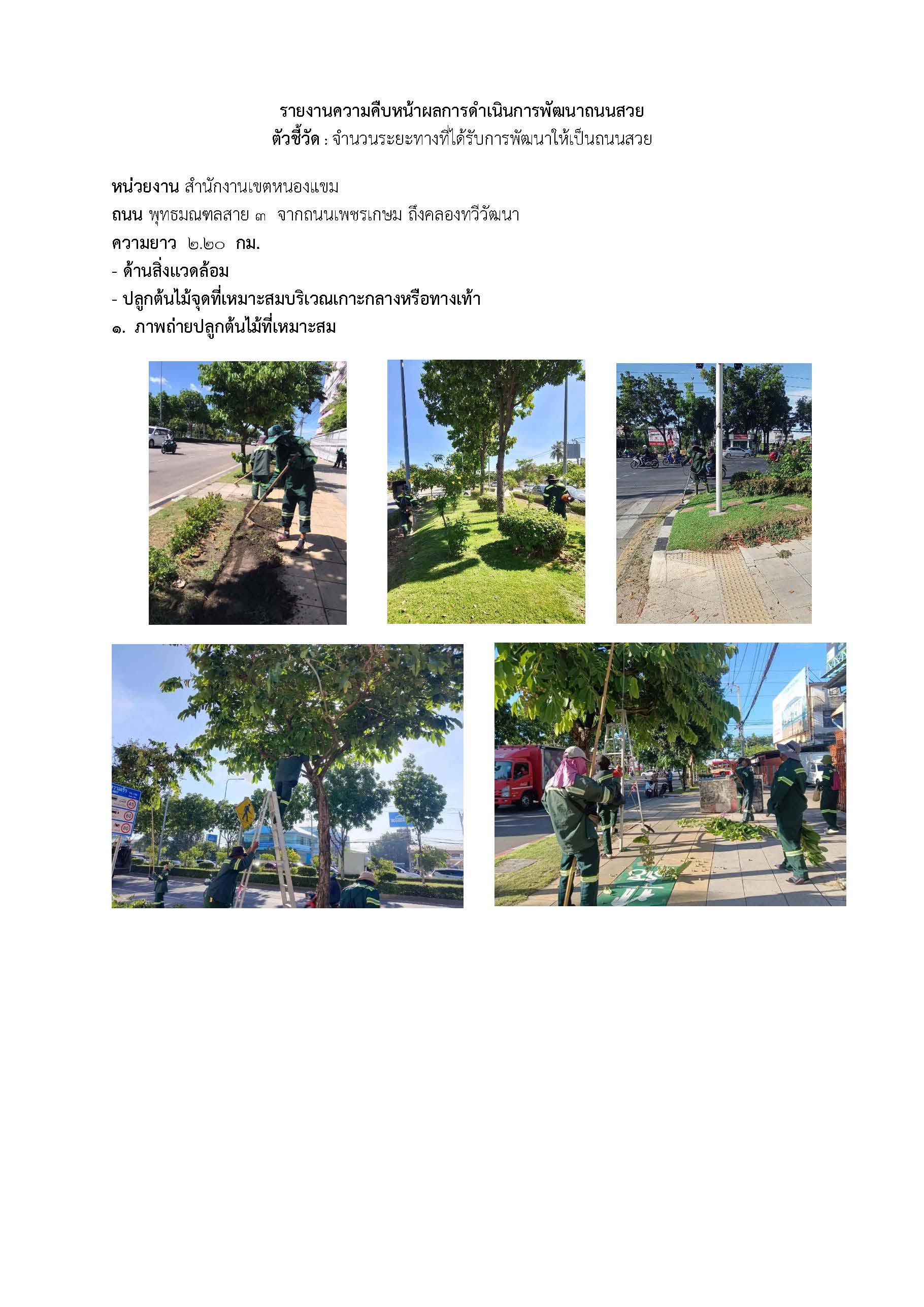 | 1 | ![]() | 2024-07-24 00:00:00.0000000 | 0.00 | 0.00 | ได้ดำเนินการทางด้านกายภาพ สำรวจทางเท้าและผิวจราจร ที่ชำรุดและดำเนินการแก้ไข เครื่องหมายจราจรฯ จัดระเบียบหาบเร่แผงลอยบนทางเท้า รวมทั้งบำรุงรักษาปลูกต้นไม้บริเวณเกาะกลาง ตัดแต่งกิ่งไม้ให้เป็นระเบียบ ดำเนินการล้างทำความสะอาดถนน ตลอดบริเวณถนนพุทธมณฑลสาย 3 และได้รายงานความคืบหน้าไตรมาส 3 สำนักการโยธาเรียบร้อยแล้วตามหนังสือที่ กท 6103/1647 ลงวันที่ 12 กรกฎาคม 2567 | ||