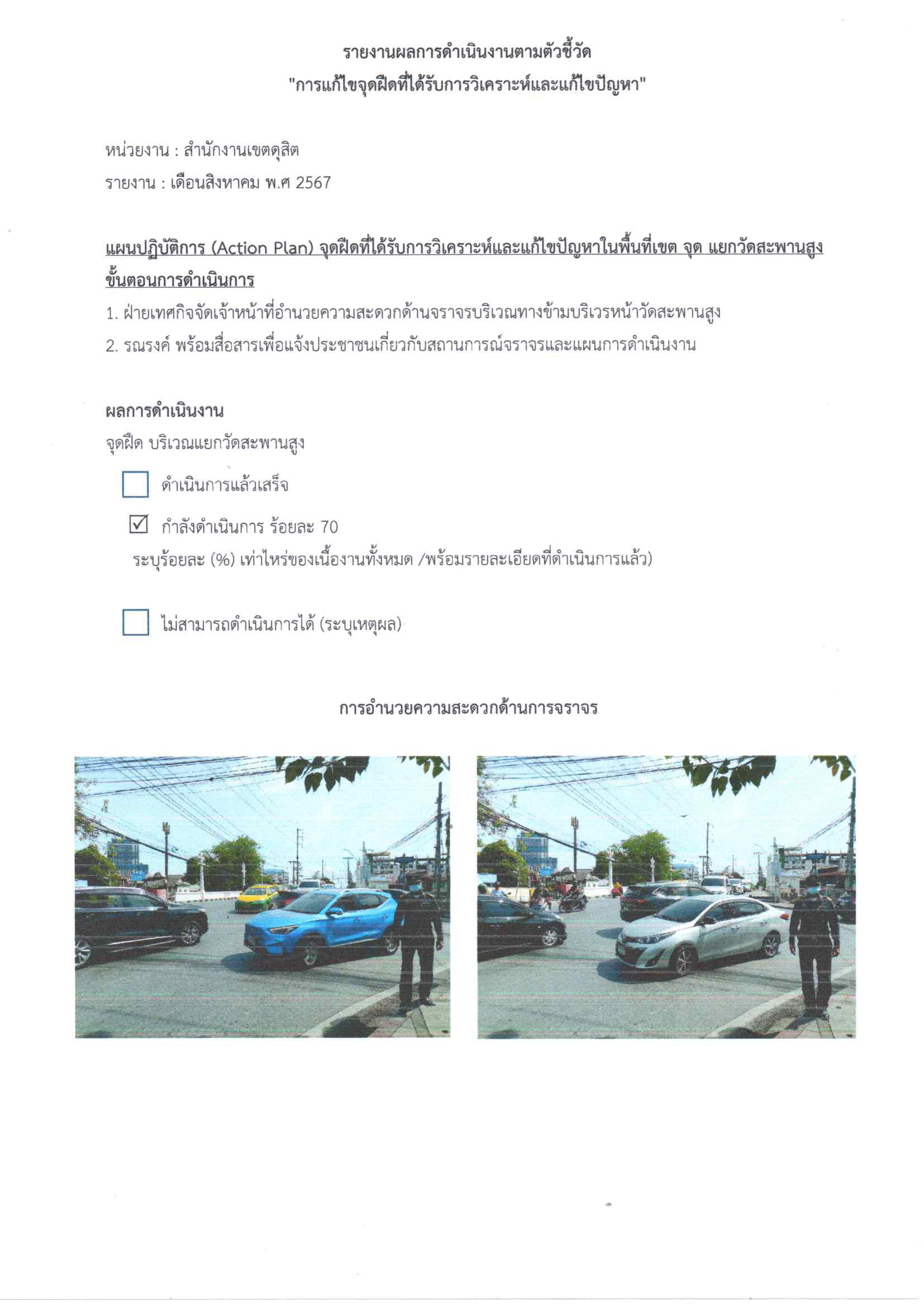 | 10 | ![]() | 2024-02-29 00:00:00.0000000 | 0.00 | 0.00 | 1. กวดขันวินัยจราจรทั้งบนทางเท้าและบนถนน 2.แก้ไขปรับปรุงเชิงกายภาพในส่วนที่สามารถดำเนินการได้ 3.จัดการประชุมร่วมกับหน่วยงานที่เกี่ยวข้อง เพื่อติดตามสถานการณ์ปัญหา 4. ประสานสถานีตำรวจท้องที่่ในการอำนวยความสะดวกด้านการจราจร |