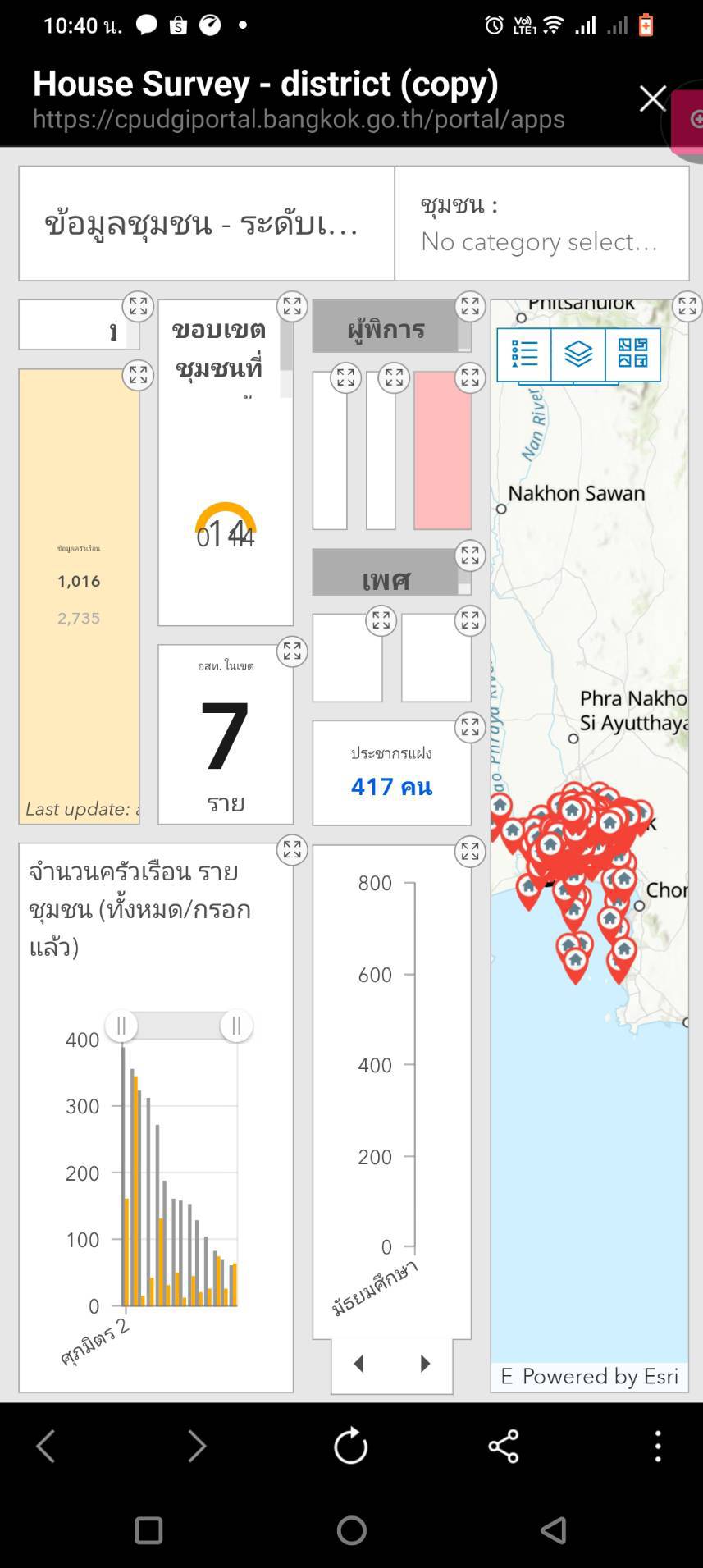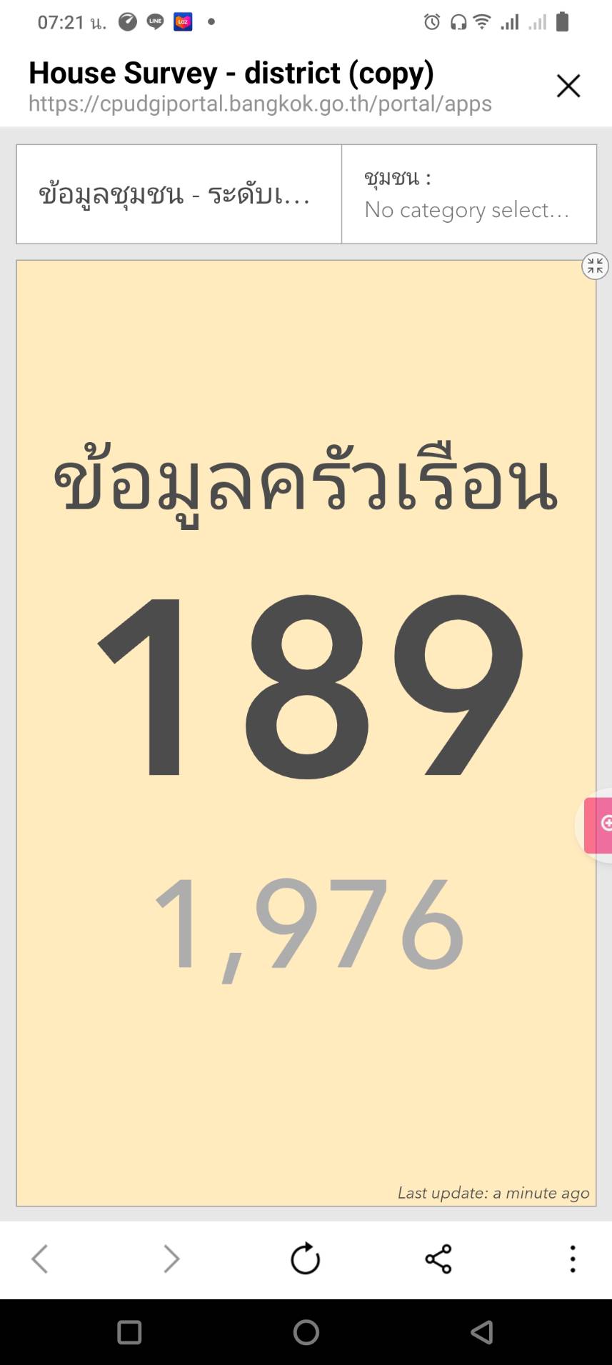 | 18 | ![]() | 2024-03-12 00:00:00.0000000 | 7.00 | 0.00 | ดำเนินการลงพื้นที่สำรวจข้อมูลอุปกรณ์ป้องกันภัยและบรรเทาสาธารณภัย และดำเนินการทำแผนที่ชุมชนออนไลน์ 189 ครัวเรือน จาก 2,735 ครัวเรือน โดยอาสาสมัครเทคโนโลยีของสำนักงานเขต จำนวน 7 คน |