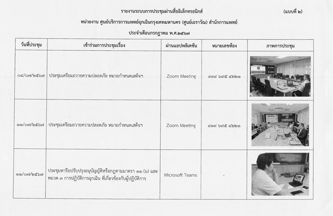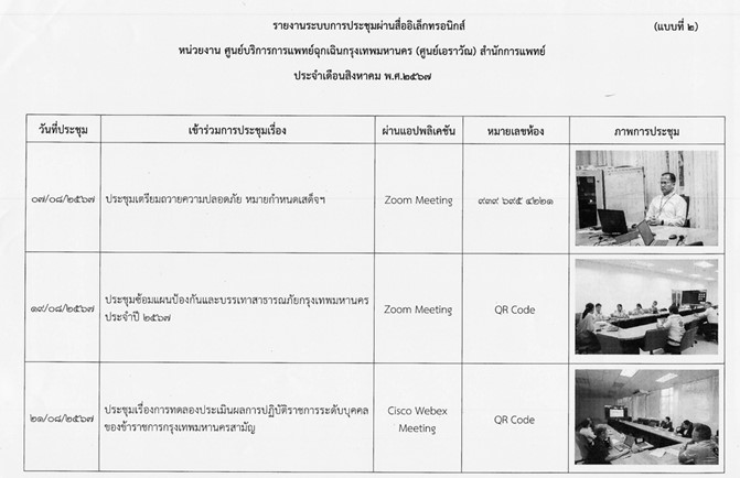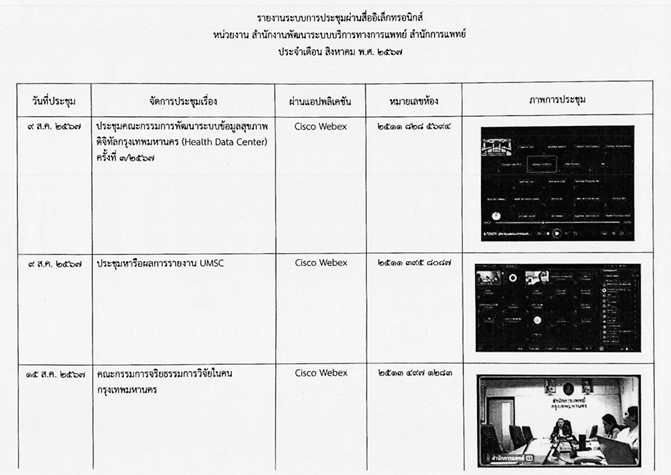 | 1414 | ![]() | 2024-07-30 00:00:00.0000000 | 0.00 | 0.00 | 1. ระบบสารสนเทศหลักของกรุงเทพมหานคร (MIS2) จำนวนบัญชีในระบบสารสนเทศหลักของกรุงเทพมหานคร (MIS2) ของสำนักการแพทย์ มีจำนวน 614 คน ผู้ที่มีหน้าที่ภารกิจที่เกี่ยวข้อง/ที่มีหน้าที่ในการใช้ระบบสารสนเทศหลักของกรุงเทพมหานคร (MIS2) ลงทะเบียนฯ เข้าใช้งานแล้ว จำนวน 583 คน 2. ระบบสารบรรณอิเล็กทรอนิกส์ของกรุงเทพมหานคร ข้าราชการกรุงเทพมหานครสามัญ (ที่ครองตำแหน่ง) ในสังกัดสำนักการแพทย์ จำนวน 4,913 คน ลงทะเบียนเข้าสู่ระบบผ่าน ฺBMA SSO แล้ว จำนวน 3,500 คน 2.1 หน่วยสารบรรณกลางของหน่วยงานและหน่วยสารบรรณกลางของส่วนราชการ - การลงทะเบียนรับหนังสือ จำนวน 44,123 เรื่อง - เสนอหนังสือต่อผู้บังคับบัญชา จำนวน 1,426 รายการ - ผู้บังคับบัญชาเกษียนหนังสือ จำนวน 820 รายการ - ส่งหนังสือให้ส่วนราชการหรือผู้ที่เกี่ยวข้อง จำนวน 120,849 รายการ - ผู้ที่เกี่ยวข้องลงทะเบียนรับหนังสือส่วนบุคคล จำนวน 81,433 รายการ 2.2 หนังสือติดต่อระหว่างส่วนราชการและเสนอหัวหน้าหน่วยงาน จำนวน 97,577 รายการ 2.3 หนังสือติดต่อระหว่างหน่วยงาน และเสนอผู้บริหาร - หนังสือติดต่อระหว่างหน่วยงาน จำนวน 2,783 รายการ - หนังสือติดต่อกับส่วนราชการในสังกัด สนป. จำนวน 2,781 รายการ - หนังสือเสนอผู้บริหารกรุงเทพมหานคร จำนวน 487 เรื่อง 2.4 ระบบหนังสือเวียนอิเล็กทรอนิกส์ - การสร้างหนังสือในระบบ และนอกระบบ จำนวนรวม 448 เรื่อง - การลงทะเบียนรับหนังสือจากระบบ จำนวนรวม 95,987 เรื่อง 2.4 ระบบหนังสือเวียนอิเล็กทรอนิกส์ - นำเข้าหนังสือเวียนที่เกี่ยวข้องเพื่อลงทะเบียนรับหนังสือ จำนวน 83,008 เรื่อง - สร้างหนังสือเวียนในระบบสารบรรณอิเล็กทรอนิกส์ แล้วเวียนแจ้งจากระบบหนังสือเวียนอิเล็กทรอนิกส์ จำนวน 117,515 เรื่อง 2.5 การบริหารจัดการห้องประชุม ทุกส่วนราชการในสังกัดสำนักการแพทย์ข้าราชการที่ได้รับมอบหมายเป็นผู้มีสิทธิ์จองห้องประชุมในระบบฯ มีการ Log in เพื่อเข้าใช้งานระบบฯ ครบทุกส่วนราชการ 3. ระบบรับเรื่องร้องทุกข์ของกรุงเทพมหานคร การรับเรื่องและบริหารจัดการปัญหาเมืองสำหรับกรุงเทพมหานครแอปพลิเคชัน Traffy Fondue เพื่อตรวจสอบเรื่องร้องเรียนของหน่วยงานในสังกัดสำนักการแพทย์ มอบหมายผู้ดูแลระบบ (admin) เข้าระบบ Log in จำนวน 1 ครั้ง/วัน เข้าระบบฯ ครบทุกส่วนราชการ มีเรื่องร้องเรียนผ่านระบบฯ จำนวน 417 เรื่อง 4. ระบบบริการภาครัฐ ผู้ดูแลระบบ (admin) ของสำนักการแพทย์ เข้าใช้งานระบบในการดำเนินการรับเรื่องร้องเรียนภายใต้ระบบบริการภาครัฐ โดยการเข้าสู่ระบบ (log in) เพื่อตรวจสอบเรื่องร้องเรียนภายใต้ระบบบริการภาครัฐ ในระบบไม่น้อยกว่าวันละ 1 ครั้งในเวลาราชการ 5. ระบบยืนยันตัวตนและตรวจสอบบ