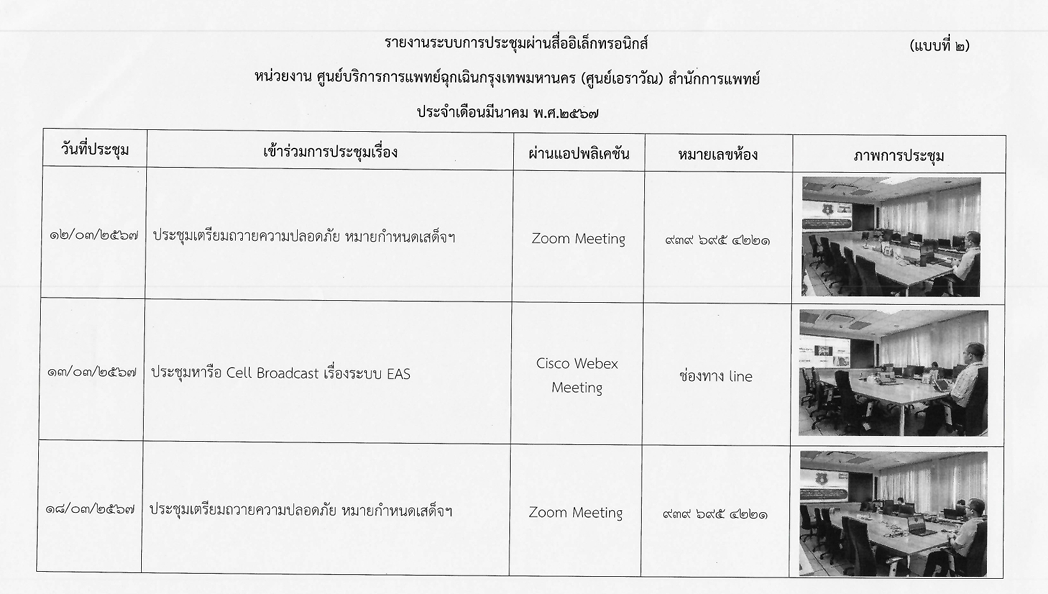 | 1414 | ![]() | 2024-06-28 00:00:00.0000000 | 0.00 | 0.00 | 1. ระบบสารสนเทศหลักของกรุงเทพมหานคร (MIS2) จำนวนบัญชีในระบบสารสนเทศหลักของกรุงเทพมหานคร (MIS2) ของสำนักการแพทย์ มีจำนวน 614 คนผู้ที่มีหน้าที่ภารกิจที่เกี่ยวข้อง/ที่มีหน้าที่ในการใช้ระบบสารสนเทศหลักของกรุงเทพมหานคร (MIS 2) ลงทะเบียนฯ เข้าใช้งานแล้ว จำนวน 548 คน 2. ระบบสารบรรณอิเล็กทรอนิกส์ของกรุงเทพมหานคร ข้าราชการกรุงเทพมหานครสามัญ (ที่ครองตำแหน่ง) ในสังกัดสำนักการแพทย์ จำนวน 4,913 คน ลงทะเบียนเข้าสู่ระบบผ่าน ฺBMA SSO แล้ว จำนวน 2,566 คน 2.1 หน่วยสารบรรณกลางของหน่วยงานและหน่วยสารบรรณกลางของส่วนราชการ - การลงทะเบียนรับหนังสือ จำนวน 44,123 เรื่อง - เสนอหนังสือต่อผู้บังคับบัญชา จำนวน 1,420 รายการ - ผู้บังคับบัญชาเกษียนหนังสือ จำนวน 820 รายการ - ส่งหนังสือให้ส่วนราชการหรือผู้ที่เกี่ยวข้อง จำนวน 120,849 รายการ - ผู้ที่เกี่ยวข้องลงทะเบียนรับหนังสือส่วนบุคคล จำนวน 81,433 รายการ 2.2 หนังสือติดต่อระหว่างส่วนราชการและเสนอหัวหน้าหน่วยงาน จำนวน 97,577 รายการ 2.3 หนังสือติดต่อระหว่างหน่วยงาน และเสนอผู้บริหาร - หนังสือติดต่อระหว่างหน่วยงาน จำนวน 2,783 รายการ - หนังสือติดต่อกับส่วนราชการในสังกัด สนป. จำนวน 2,781 รายการ - หนังสือเสนอผู้บริหารกรุงเทพมหานคร จำนวน 487 เรื่อง 2.4 ระบบหนังสือเวียนอิเล็กทรอนิกส์ - นำเข้าหนังสือเวียนที่เกี่ยวข้องเพื่อลงทะเบียนรับหนังสือ จำนวน 83,008 เรื่อง - สร้างหนังสือเวียนในระบบสารบรรณอิเล็กทรอนิกส์ แล้วเวียนแจ้งจากระบบหนังสือเวียนอิเล็กทรอนิกส์ จำนวน 117,515 เรื่อง 2.5 การบริหารจัดการห้องประชุม ทุกส่วนราชการในสังกัดสำนักการแพทย์ข้าราชการที่ได้รับมอบหมายเป็นผู้มีสิทธิ์จองห้องประชุมใน ระบบฯ มีการ Log in เพื่อเข้าใช้งานระบบฯ ครบทุกส่วนราชการ 3. ระบบรับเรื่องร้องทุกข์ของกรุงเทพมหานคร การรับเรื่องและบริหารจัดการปัญหาเมืองสำหรับกรุงเทพมหานครแอปพลิเคชัน Traffy Fondue เพื่อตรวจสอบเรื่องร้องเรียนของหน่วยงานในสังกัดสำนักการแพทย์ มอบหมายผู้ดูแลระบบ (admin) เข้าระบบ Log in จำนวน 1 ครั้ง/วัน เข้าระบบฯ ครบทุกส่วนราชการ มีเรื่องร้องเรียนผ่านระบบฯ จำนวน 391 เรื่อง 4. ระบบบริการภาครัฐ ผู้ดูแลระบบ (admin) ของสำนักการแพทย์ เข้าใช้งานระบบในการดำเนินการรับเรื่องร้องเรียนภายใต้ระบบบริการภาครัฐ โดยการเข้าสู่ระบบ (log in) เพื่อตรวจสอบเรื่องร้องเรียนภายใต้ระบบบริการภาครัฐ ในระบบไม่น้อยกว่าวันละ 1 ครั้งในเวลาราชการ 5. ระบบยืนยันตัวตนและตรวจสอบบุคคลในระบบดิจิทัล Certificate Authority (CA) หรือระบบ บริหารจัดการการใช้งานระบบสารสนเทศสนับสนุนการเชื่อมโยง (BMA Single Sign-On) 5.1 ระบบยืนยันตัวตนและตรวจสอบตัวบุค