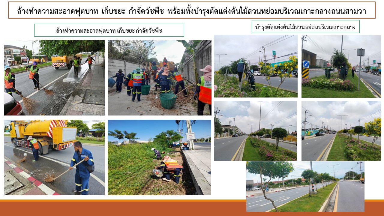 | 1 | ![]() | 2024-05-31 00:00:00.0000000 | 0.00 | 0.00 | ฝ่ายรักษาความสะอาดฯ ดำเนินการล้างทำความสะอาดฟุตบาท เก็บขยะ กำจัดวัชพืช พร้อมทั้งบำรุงตัดแต่งต้นไม้สวนหย่อมบริเวณเกาะกลางถนนสามวา | ||