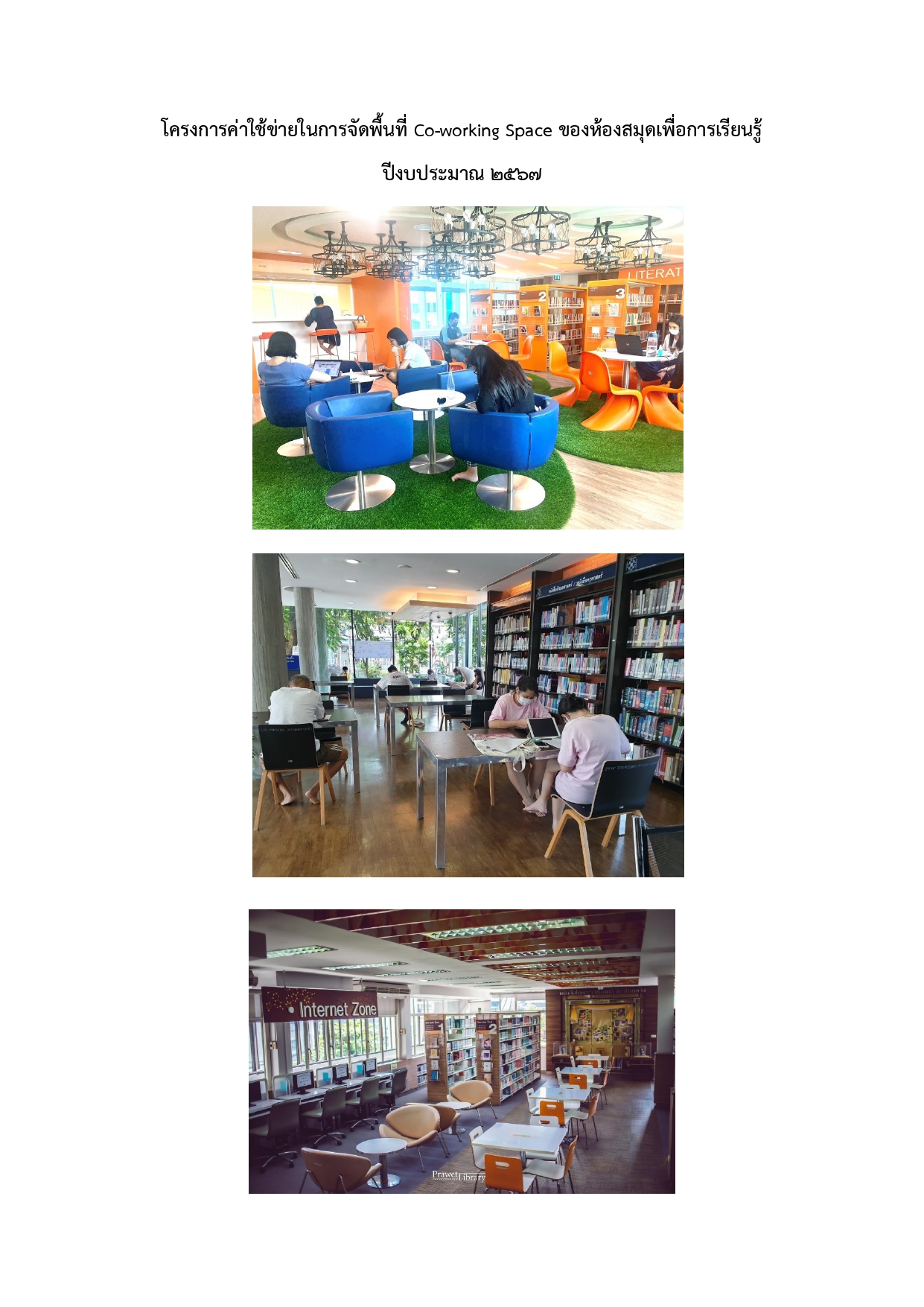 | 1524 |  | 2024-07-26 00:00:00.0000000 | 0.00 | 0.00 |  | อยู่ระหว่างดำเนินการให้บริการ Co-working Space ในห้องสมุดฯ 20 แห่ง สถิติผู้เข้าใช้