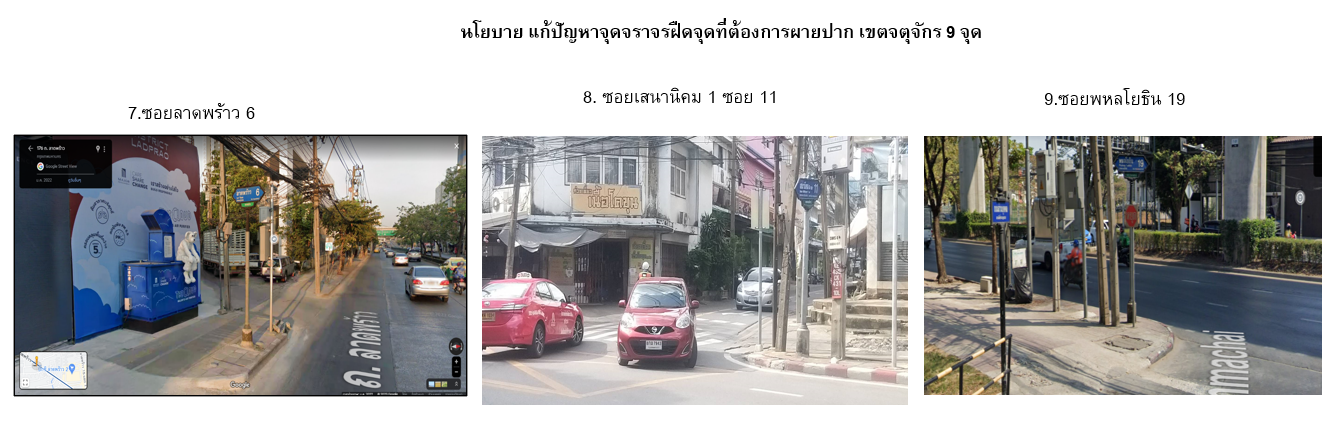 | 10 | ![]() | 2024-06-26 00:00:00.0000000 | 0.00 | 0.00 | สำนักการจราจร ได้กำหนดจุดฝืดในพื้นที่เขตจตุจักร จำนวน 6 จุด (ตามบัญชีของ สจส.) ดังนี้ 1. สถานีกลางกรุงเทพอภิวัฒน์ 2. หน้าตลาดนัดจตุจักร ถนนพหลโยธิน 3. หน้าตลาดต้นไม้ ถนนกำแพงเพชร 4. ปากทางลาดพร้าว (ช่วงโค้ง ถนนลาดพร้าวก่อนตัดกับ ถนนพหลโยธิน) 5. ถนนลาดพร้าว (ปากซอยลาดพร้าว 23 - ซอยลาดพร้าว 25) 6. ถนนงามวงศ์วานก่อนถึงแยกบางเขน 100 เมตร (มาจากแยกพงษ์เพชร) อยู่ระหว่างดำเนินการ | ||