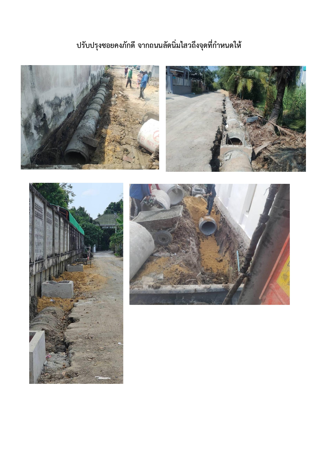 | 1526 | ![]() | 2024-03-27 00:00:00.0000000 | 0.00 | 0.00 | วันที่ 25 มีนาคม 2567 วางท่อและบ่อพักแล้วเสร็จ อยู่ระหว่างสร้างขอบบ่อพักท่อระบายน้ำ ผลงานที่ได้ 50% | ||