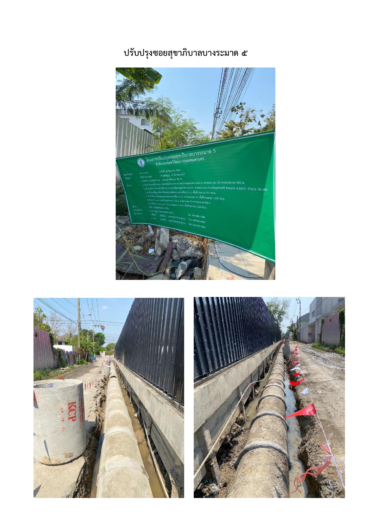 | 1526 | ![]() | 2024-02-28 00:00:00.0000000 | 0.00 | 0.00 | - ลงนามสัญญาเมื่อวันที่ 28 ธันวาคม 2566 สิ้นสุดสัญญาวันที่ 27 มีนาคม 2567 ระยะเวลาดำเนินการ 90 วัน - วันที่ 27 กุมภาพันธ์ 2566 อยู่ระหว่างวางท่อและวางบ่อพัก ผลงาน 30% |