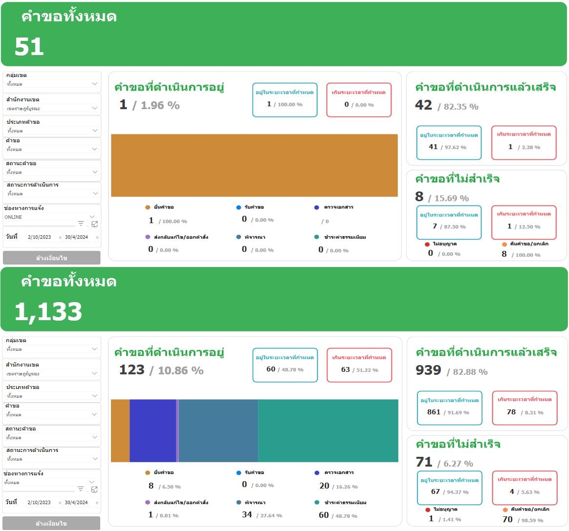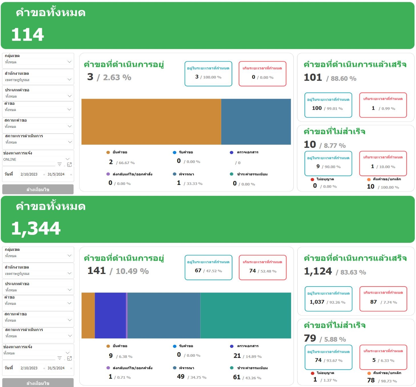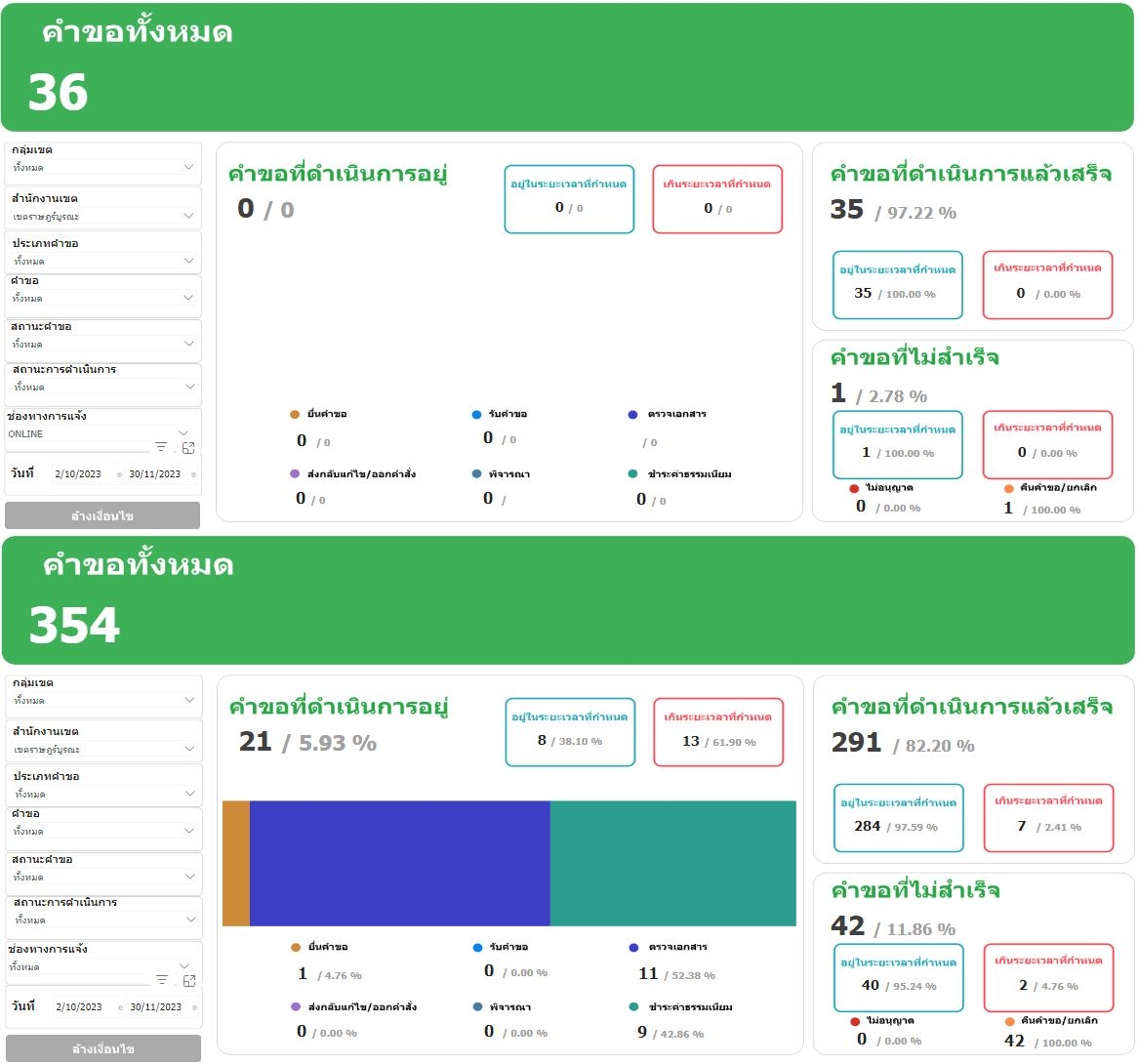 ![]() | 2 | รายงานจำนวนผู้รับบริการผ่านระบบศูนย์รับคำขออนุญาตของกรุงเทพมหานคร (BMA OSS) และจำนวนผู้รับบริการ ณ สำนักงานเขต (เฉพาะกระบวนงานตามระบบ BMA OSS 108 กระบวนงาน) ผ่านระบบ BMA Policy Tracking ประจำเดือนพฤศจิกายน 2566 | 8.00 | 2023-11-01 00:00:00.0000000 | 2023-11-30 00:00:00.0000000 |