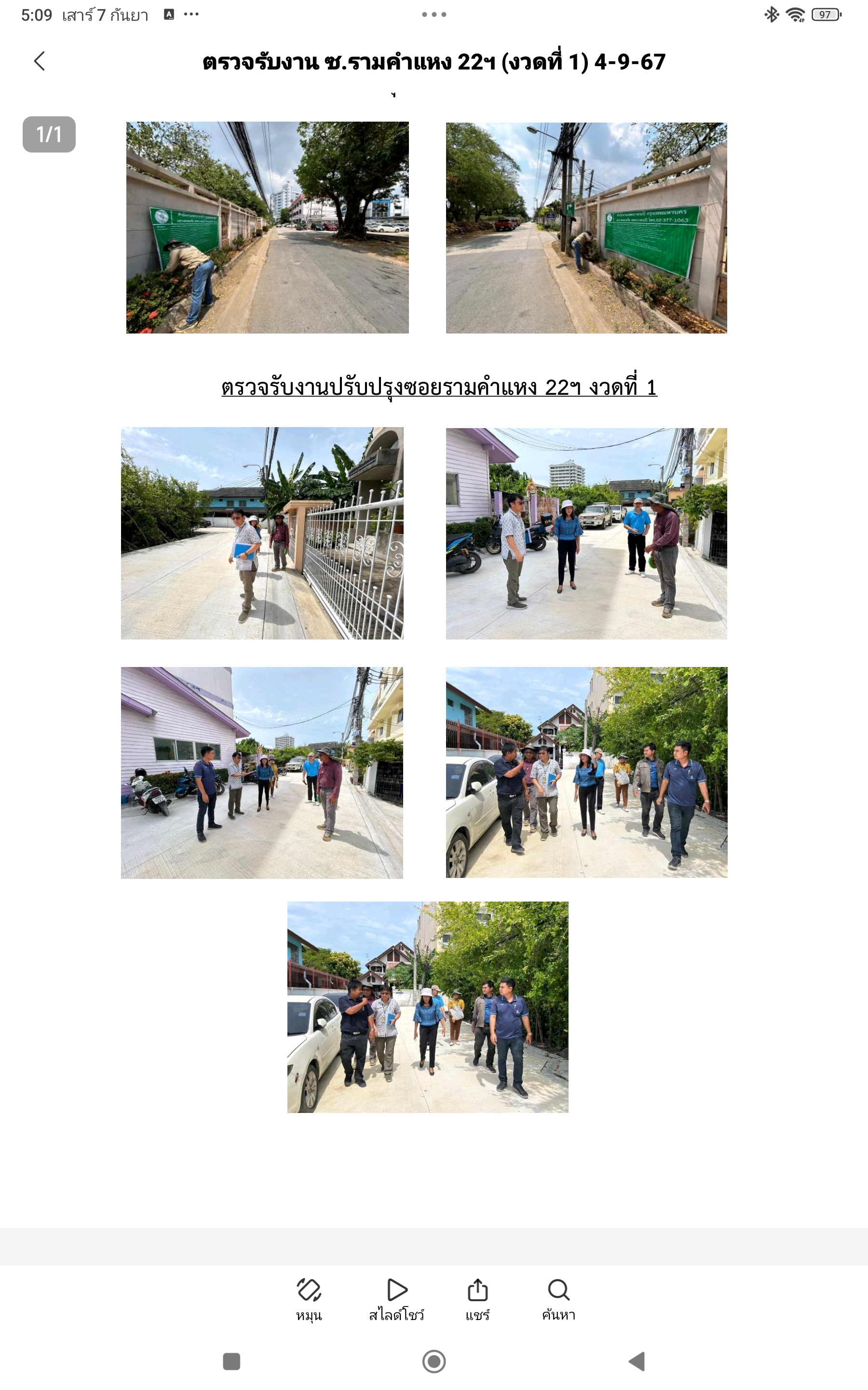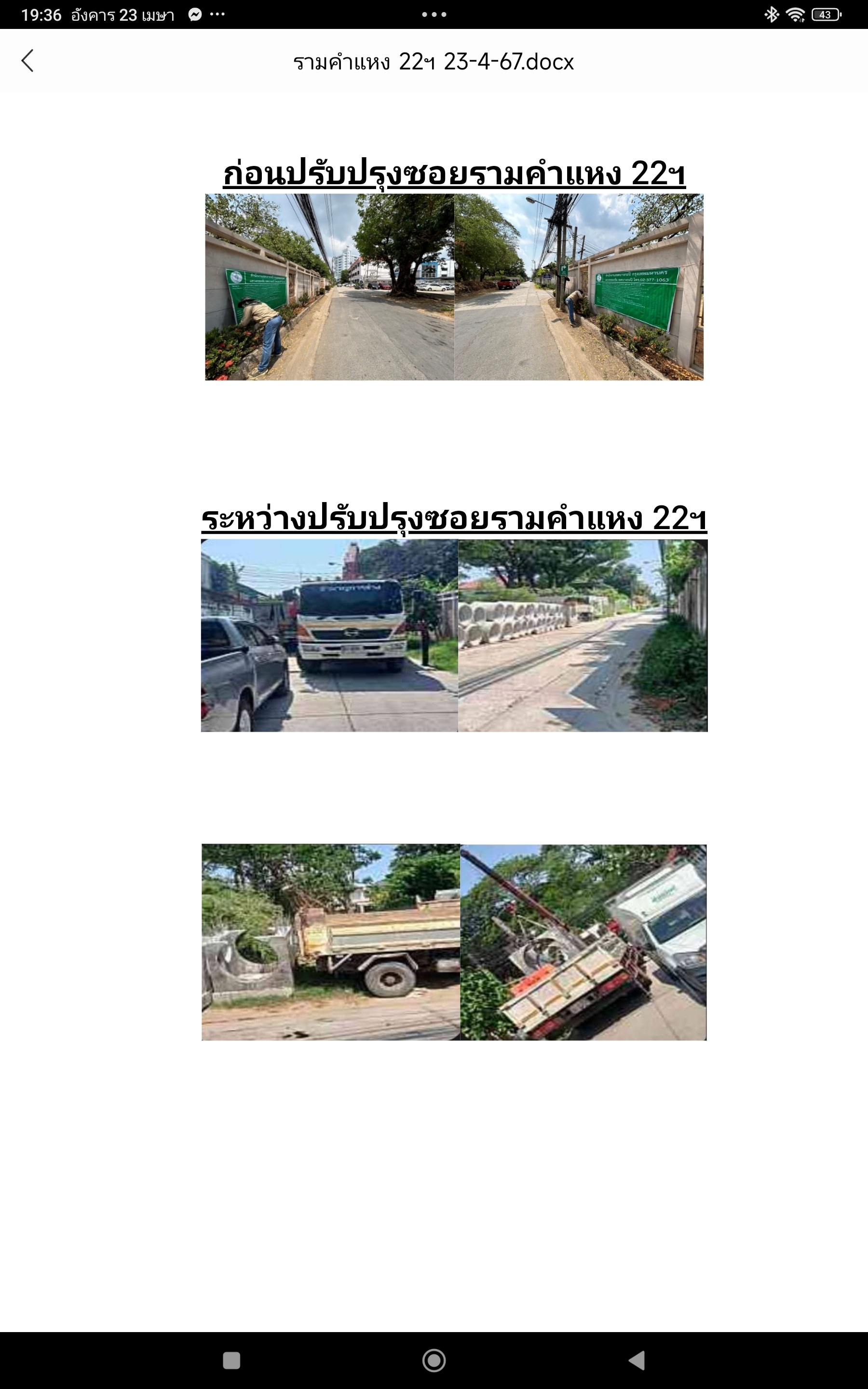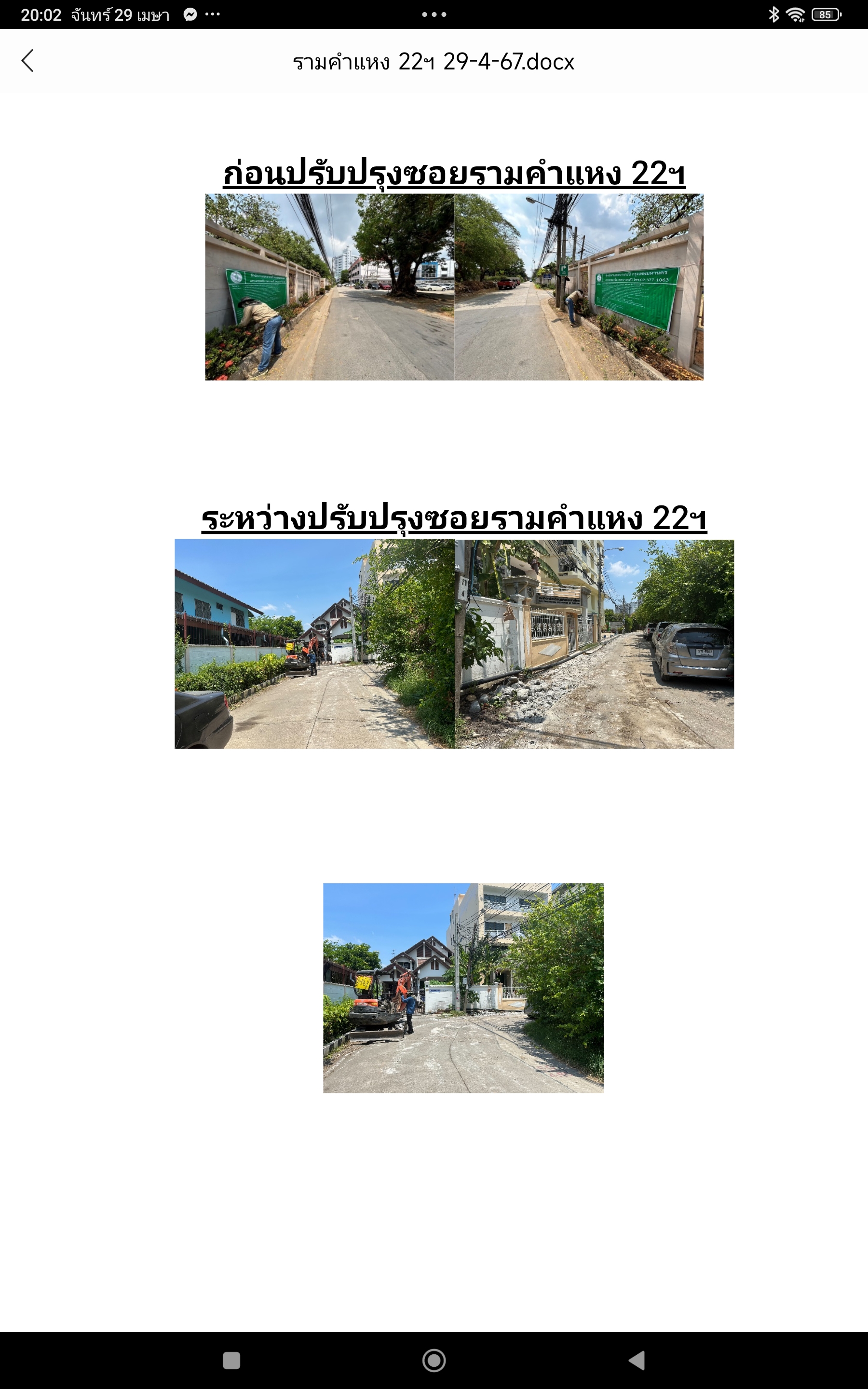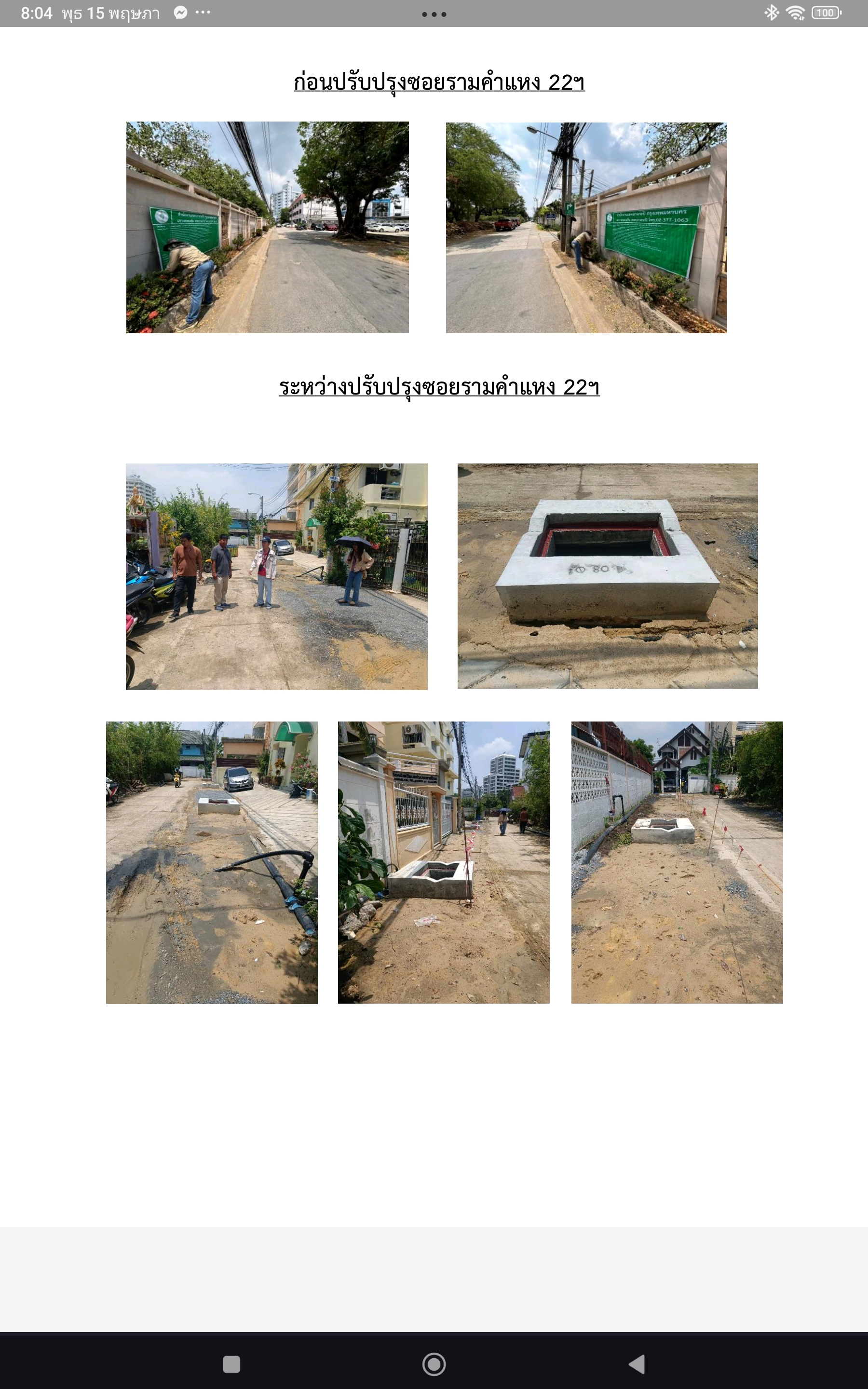 ![]() | - | ปรับปรุงซอยรามคำแหง 22 จากถนนรามคำแหง ถึงบ้านเลขที่ 72 | 14,164,000.00 | 100.00 | สำนักงานเขตบางกะปิ | ฝ่ายโยธา |