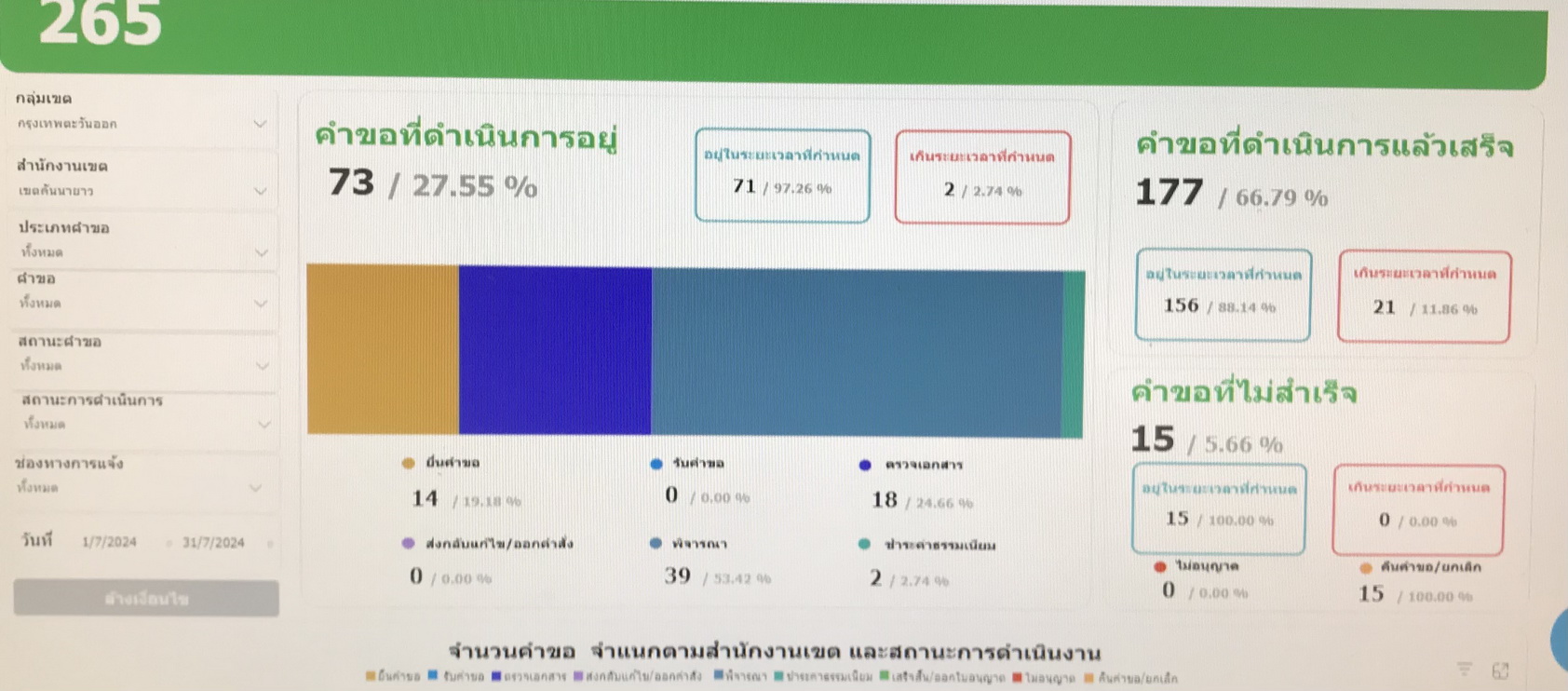 14142024-08-02 00:00:00.00000000.000.00- จำนวนคำขอทั้งหมด 265 (ข้อมูล เดือนกรกฏาคม 67) - สรุปข้อมูลผลการดำเนินงาน (2 ต.ค. 66 - 31 ก.ค. 67) จำนวนผู้มารับบริการทั้งหมด (BFC+OSS) คือ 1,930 ครั้ง จำนวนผู้รับบริการ OSS จำนวน 262 ครั้ง ผลการดำเนินการ 13.57 %