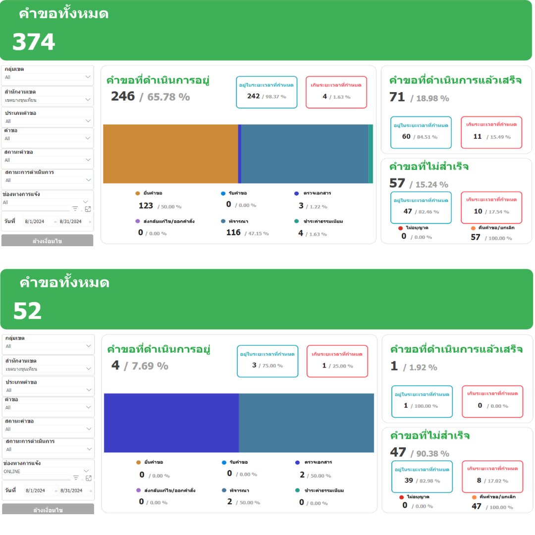 14142024-09-27 00:00:00.00000000.000.00เดือนสิงหาคม 2567 ผู้รับบริการผ่านระบบ BMA OSS จำนวน 52 ราย ผู้รับบริการของสำนักงานเขตทั้งหมด จำนวน 374 ราย คิดเป็นร้อยละ 13.90