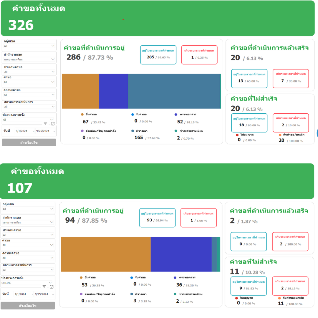 14142024-09-27 00:00:00.0000000100.000.00เดือนกันยายน 2567 ผู้รับบริการผ่านระบบ BMA OSS จำนวน 107 ราย ผู้รับบริการของสำนักงานเขตทั้งหมด จำนวน 326 ราย คิดเป็นร้อยละ 32.82