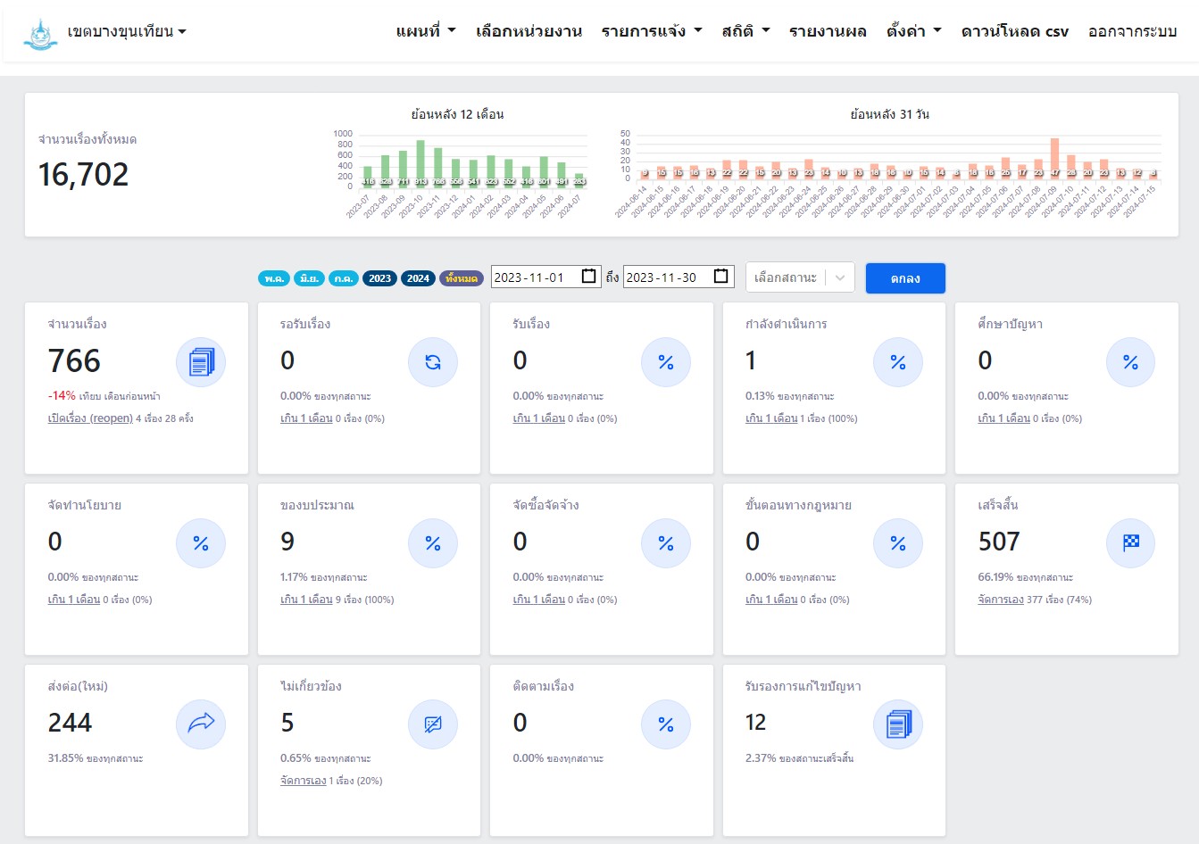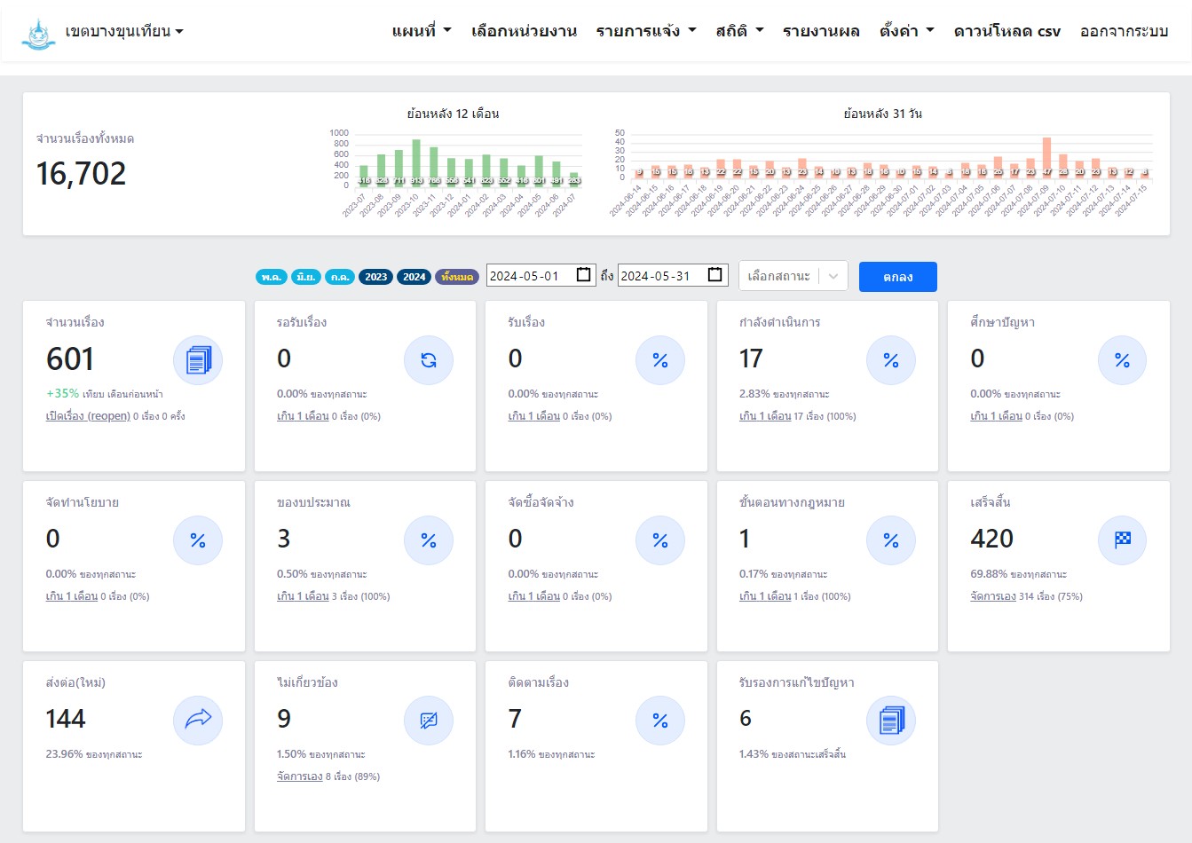![]() | - | กิจกรรมการแก้ไขปัญหาข้อร้องเรียนของประชาชนผ่านแพลตฟอร์ม Traffy Fondue | 0.00 | 100.00 | สำนักงานเขตบางขุนเทียน | ฝ่ายปกครอง |