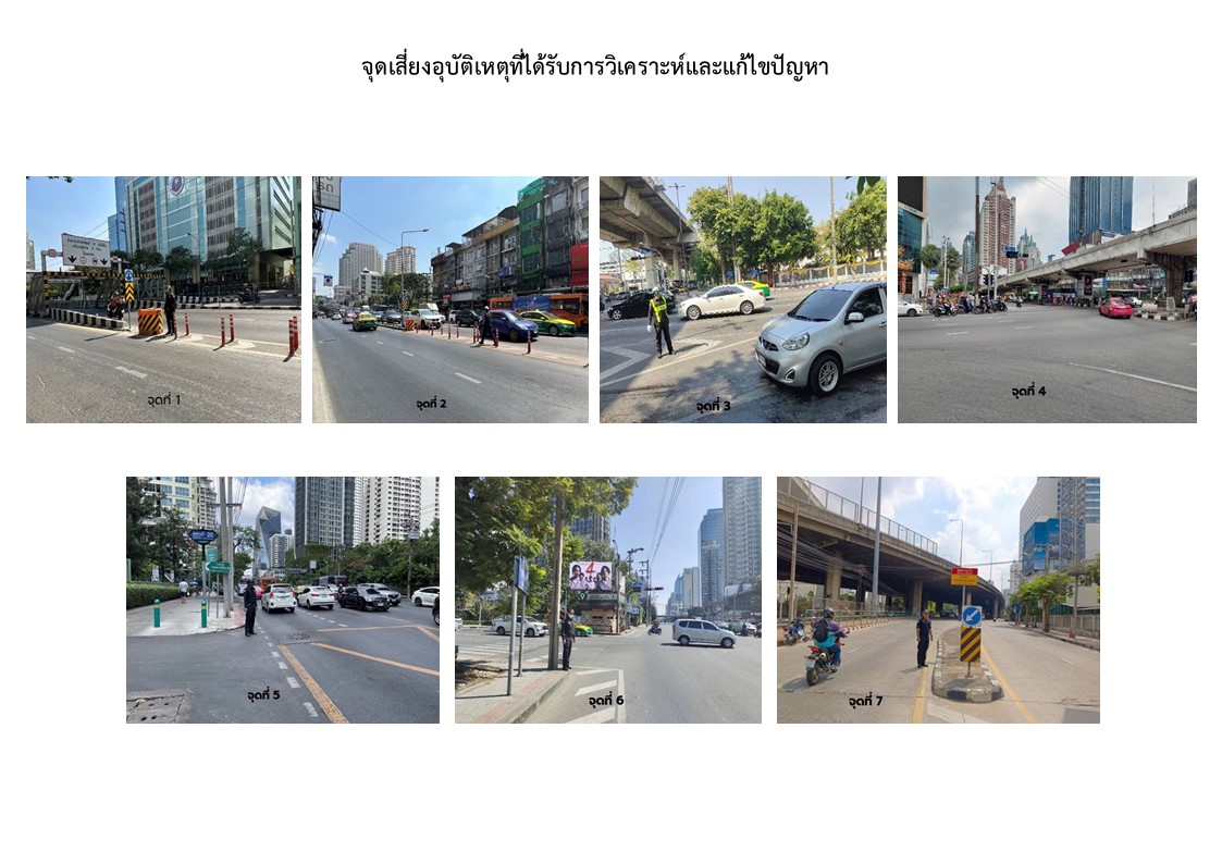 | 11 | ![]() | 2024-07-01 00:00:00.0000000 | 3.00 | 0.00 | ประสาน สจส. ดำเนินการและ สจส.ได้พิจารณาการติดตั้งป้ายซึ่งพิจารณาแล้วไม่ตรงกับหลักเกณฑ์ เนื่องจากบังคับด้วยเส้นจราจรแล้ว เท่ากับทั้ง7จุดดำเนินการเรียบร้อย 100% จุด 1 ชื่อจุดเสี่ยง บริเวณสะพานขามแยกพญาไท - สำนักการจราจรและขนส่งได้ดำเนินการติดตั้งอุปกรณ์ป้องกันและเพิ่มความปลอดภัย บริเวณ ทางขึ้นสะพานข้ามแยก - ประสานสถานีตำรวจนครบาลพญาไท ตามหนังสือที่ กท 7109/1977 ลงวันที่ 5 มิถุนายน 2567 ในการกวดขันวินัยจราจร จับ ปรับ ผู้ฝ่าฝืน - เจ้าหน้าที่เทศกิจตรวจสอบอุปกรณ์ป้องกันการเกิดอุบัติเหตุ เส้นจราจรให้อยู่ในสภาพสมบูรณ์ จุด 2 ชื่อจุดเสี่ยง บริเวณสะพานข้ามแยกสามเหลี่ยมดินแดง - สำนักการจราจรและขนส่งได้ดำเนินการติดตั้งอุปกรณ์ป้องกันและเพิ่มความปลอดภัย บริเวณ ทางขึ้นสะพานข้ามแยก - ประสานสถานีตำรวจนครบาลดินแดง ตามหนังสือที่ กท 7109/1977 ลงวันที่ 5 มิถุนายน 2567 ในการกวดขันวินัยจราจร จับ ปรับ ผู้ฝ่าฝืน - เจ้าหน้าที่เทศกิจตรวจสอบอุปกรณ์ป้องกันการเกิดอุบัติเหตุ เส้นจราจรให้อยู่ในสภาพสมบูรณ์ จุด 3 ชื่อจุดเสี่ยง บริเวณแยกศรีอยุธยา - สำนักการจราจรและขนส่งได้ดำเนินการตีเส้นจราจรบนพื้นทาง - ประสานสถานีตำรวจนครบาลพญาไท ตามหนังสือที่ กท 7109/1977 ลงวันที่ 5 มิถุนายน 2567 ในการกวดขันวินัยจราจร จับ ปรับ ผู้ฝ่าฝืน - เจ้าหน้าที่เทศกิจตรวจสอบอุปกรณ์ป้องกันการเกิดอุบัติเหตุ เส้นจราจรให้อยู่ในสภาพสมบูรณ์ จุด 4 ชื่อจุดเสี่ยง บริเวณแยกประตูน้ำ หน้าห้างเดอะพาลาเดียม - สำนักการจราจรและขนส่งได้ดำเนินการตีเส้นจราจรบนพื้นทาง - ประสานสถานีตำรวจนครบาลพญาไท ตามหนังสือที่ กท 7109/1977 ลงวันที่ 5 มิถุนายน 2567 ในการกวดขันวินัยจราจร จับ ปรับ ผู้ฝ่าฝืน - เจ้าหน้าที่เทศกิจตรวจสอบอุปกรณ์ป้องกันการเกิดอุบัติเหตุ เส้นจราจรให้อยู่ในสภาพสมบูรณ์ จุด 5 ชื่อจุดเสี่ยง บริเวณใกล้ซอยเพชรบุรี 20 ถนนเพชรบุรี - สำนักการจราจรและขนส่งได้ดำเนินการตีเส้นจราจรบนพื้นทาง - ประสานสถานีตำรวจนครบาลพญาไท ตามหนังสือที่ กท 7109/1977 ลงวันที่ 5 มิถุนายน 2567 ในการกวดขันวินัยจราจร จับ ปรับ ผู้ฝ่าฝืน - เจ้าหน้าที่เทศกิจตรวจสอบอุปกรณ์ป้องกันการเกิดอุบัติเหตุ เส้นจราจรให้อยู่ในสภาพสมบูรณ์ จุด 6 ชื่อจุดเสี่ยง บริเวณแยกมิตรสัมพันธ์ - สำนักการจราจรและขนส่งได้ดำเนินการตีเส้นจราจรบนพื้นทาง - ประสานสถานีตำรวจนครบาลมักกะสัน ตามหนังสือที่ กท 7109/1977 ลงวันที่ 5 มิถุนายน 2567 ในการกวดขันวินัยจราจร จับ ปรับ ผู้ฝ่าฝืน - เจ้าหน้าที่เทศกิจตรวจสอบอุปกรณ์ป้องกันการเกิดอุบัติเหตุ เส้นจราจรให้อยู่ในสภาพสมบูรณ์ 