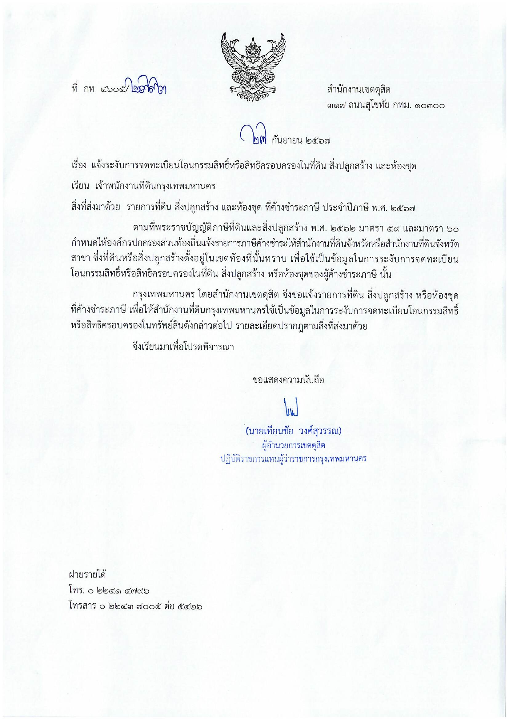 7แจ้งชื่อผู้ค้างชำระภาษีต่อกรมที่ดิน 10.002424-09-01 00:00:00.00000002424-09-30 00:00:00.0000000