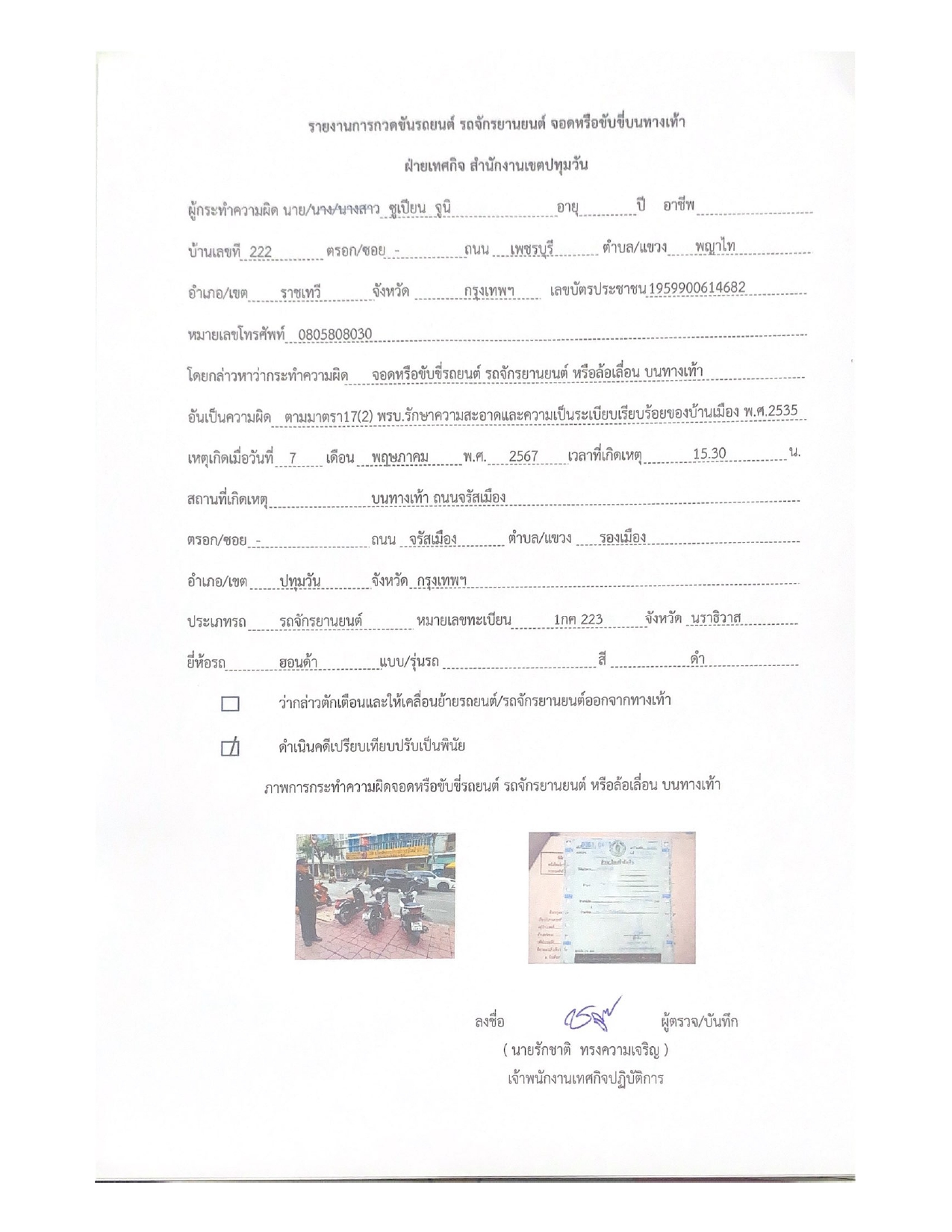 | 1556 | ![]() | 2024-05-27 00:00:00.0000000 | 0.00 | 0.00 | สายตรวจชุด 255 ส่งรายงานกวดขันจับ/ปรับ รถจักรยายนต์,รถยนต์ จอดและขับขี่บนทางเท้า ประจำเดือน พฤษภาคม 2567 | ||