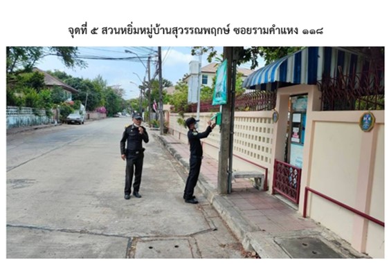 | 12 |  | 2024-03-04 00:00:00.0000000 | 1.00 | 0.00 |  | จุดที่ 5 สวนหยิ่มหมู่บ้านสุวรรณพฤกษ์ ซอยรามคำแหง 118 ลักษณะของความเสี่ยง เปลี่ยวไม่มีคนสัญจรผ่าน เงื่อนไขที่ต้องดำเนินการแก้ไขทำความสะอาดพื้นที่ และจัดเจ้าหน้าที่เทศกิจดำเนินการเฝ้าระวังตรวจตราความปลอดภัย อย่างน้อย 1 ครั้ง/วัน | |