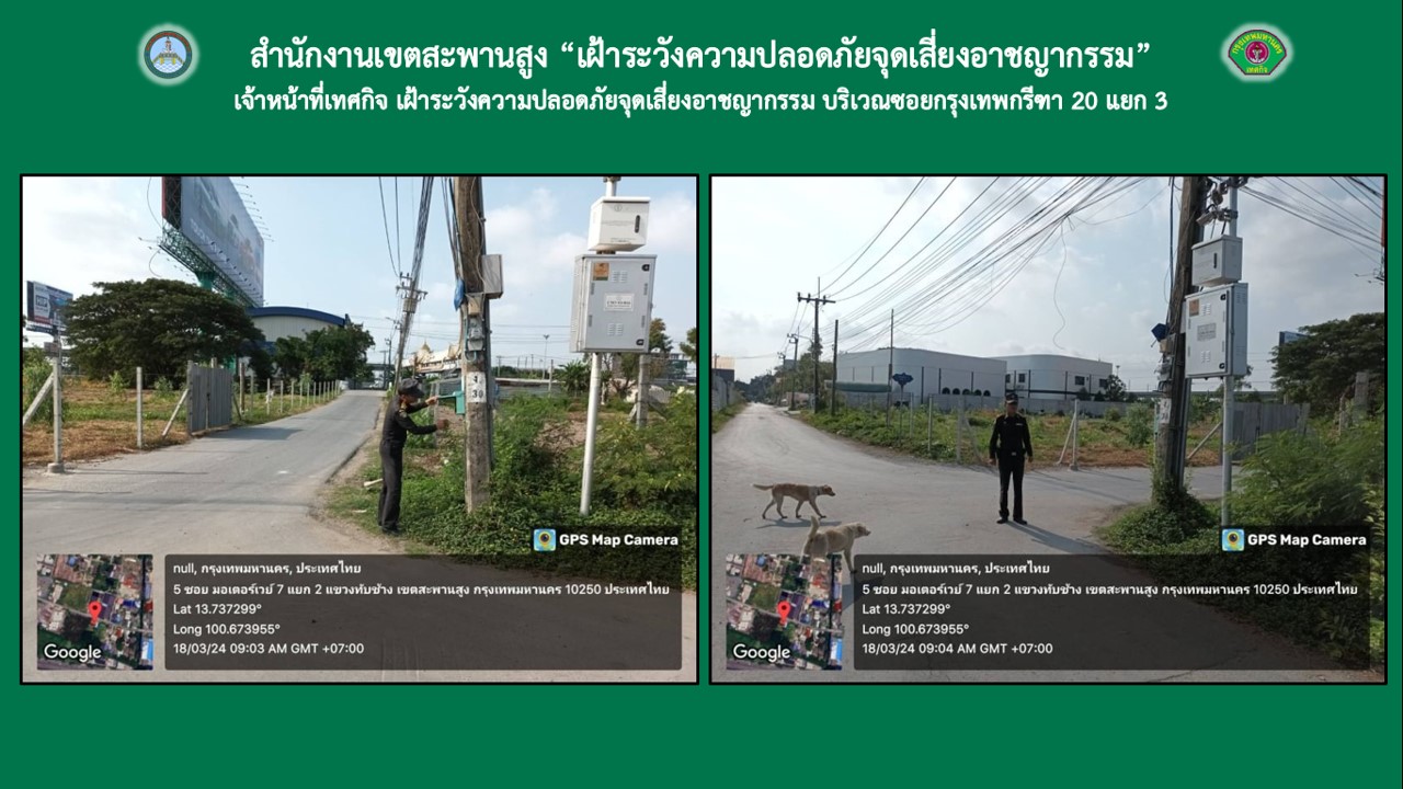 | 12 |  | 2024-03-21 00:00:00.0000000 | 0.00 | 0.00 |  | เจ้าหน้าที่เทศกิจ ตรวจตราเฝ้าระวังความปลอดภัยในชีวิตและทรัพย์สินของประชาชน บริเวณถนนกรุงเทพกรีฑาซอย 20 แยก 3 | |
