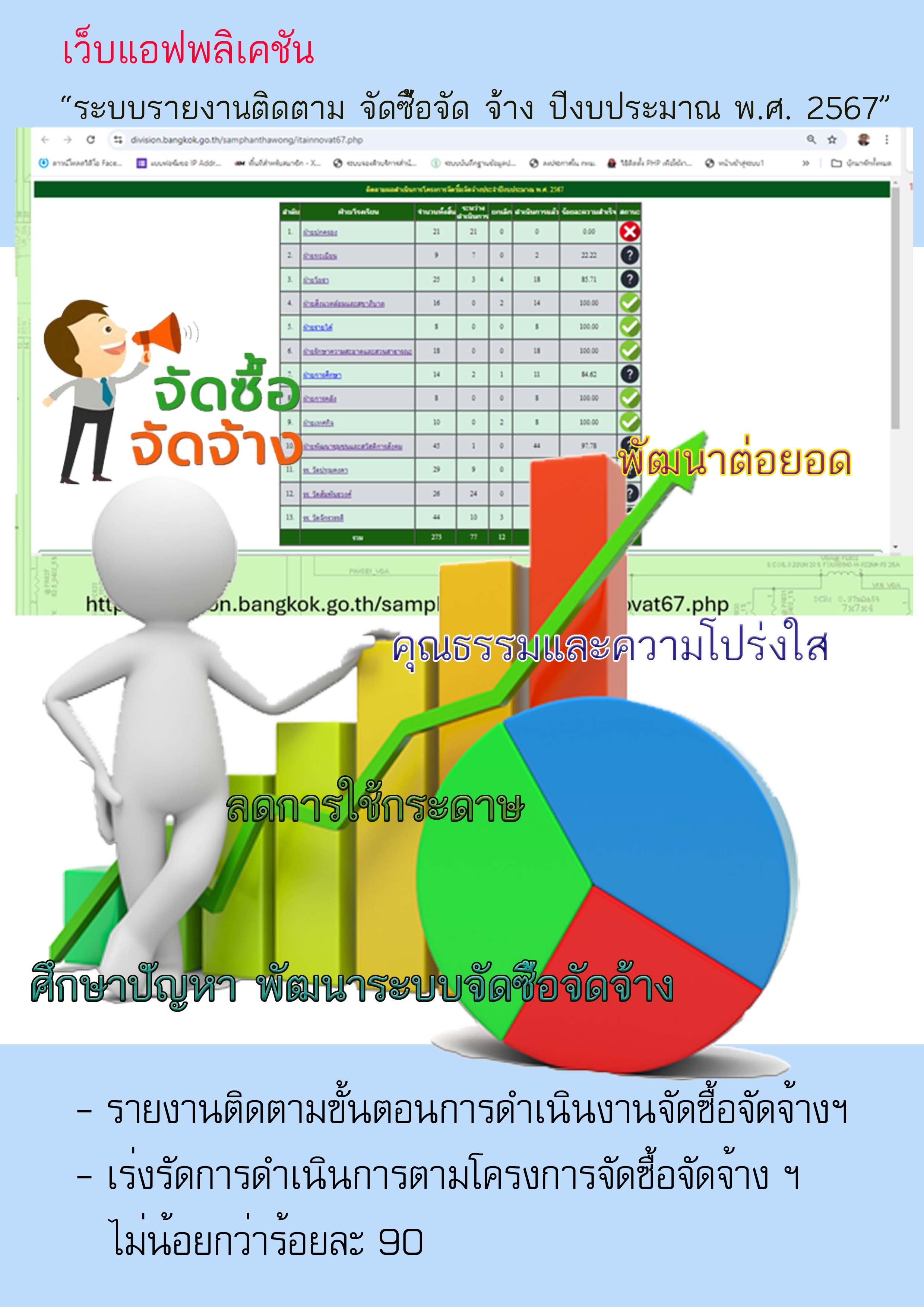 ![]() | โครงการพัฒนานวัตกรรมเพื่อเพิ่มประสิทธิภาพการปฏิบัติงานของหน่วยงาน | 0.00 | 100.00 | สำนักงานเขตสัมพันธวงศ์ | ฝ่ายปกครอง |